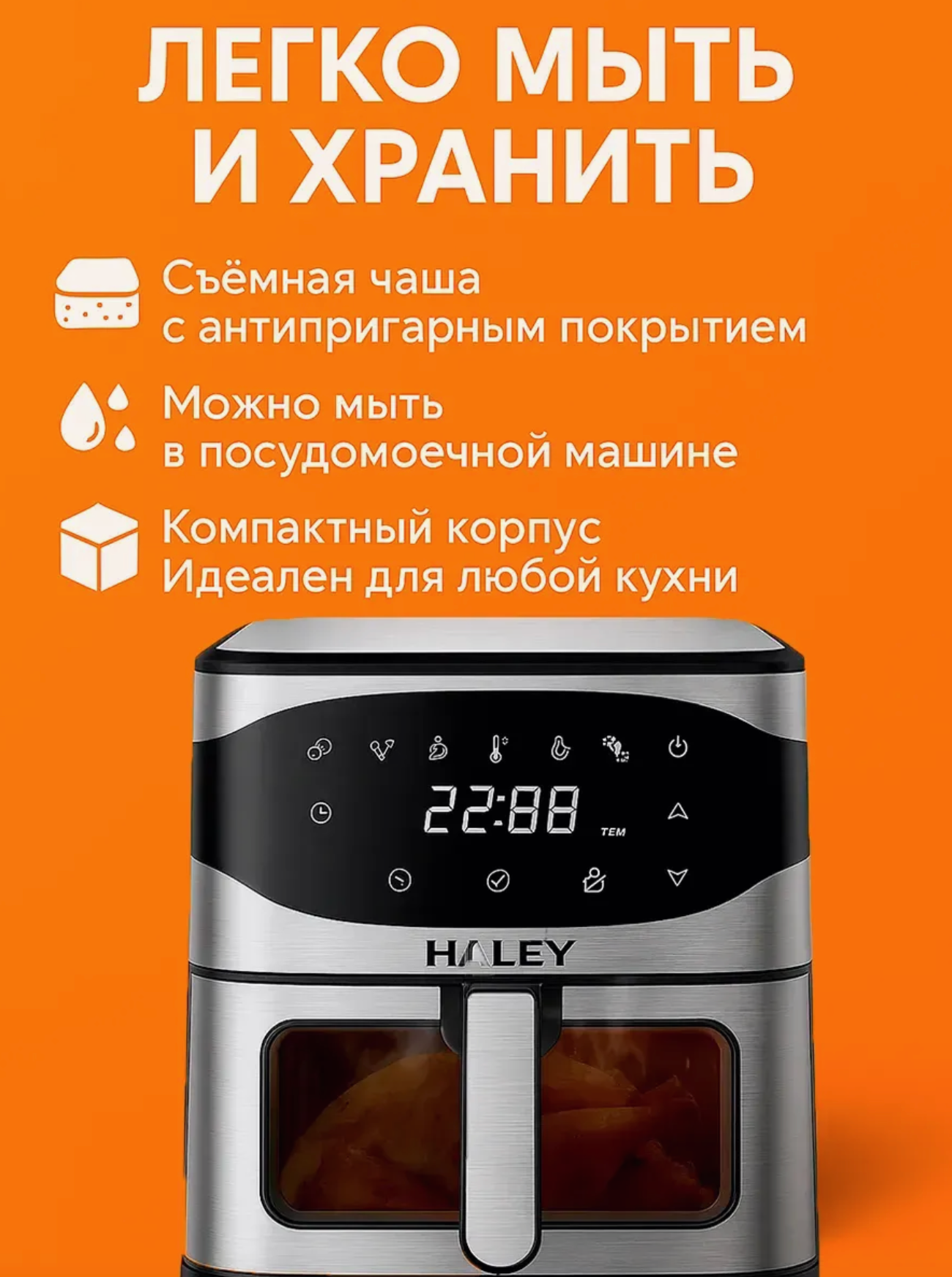 Аэрогриль Haley HY-2503, серебристый, 10л, электронное управление, 2000Вт интересное: