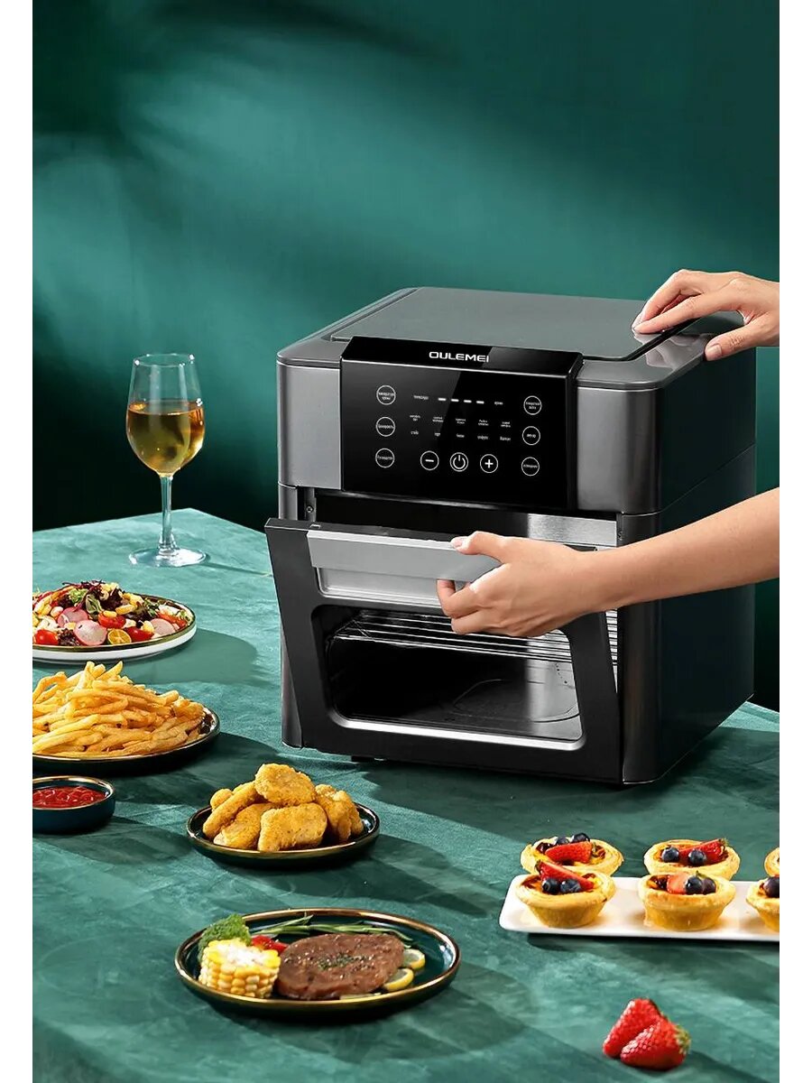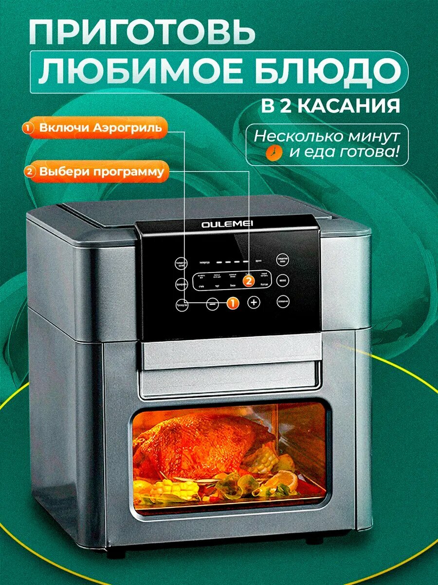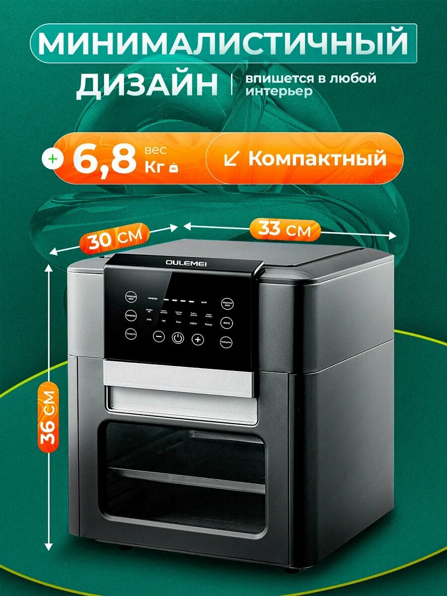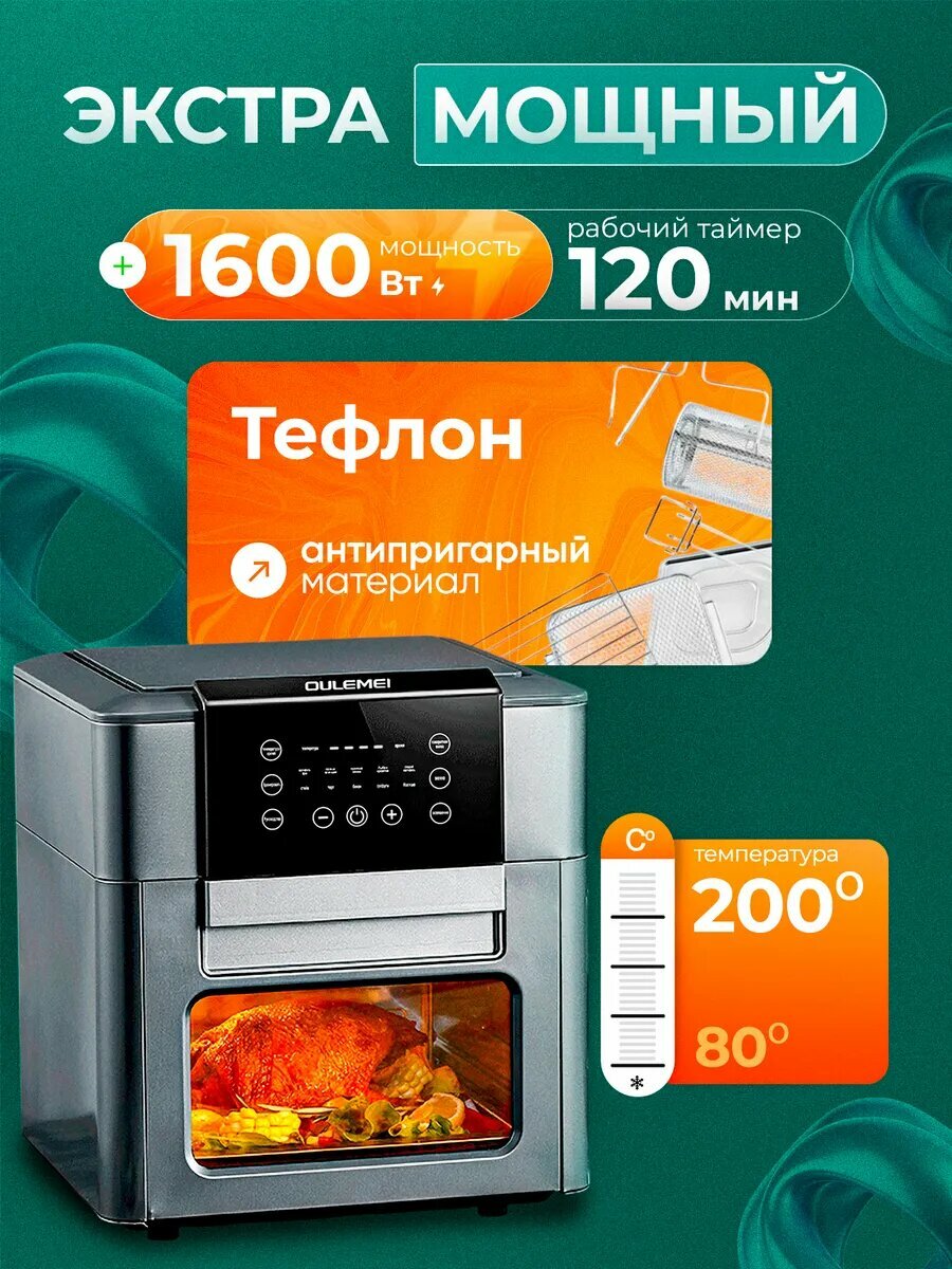 Аэрогриль электрический, 12 литров, 1600 Вт, 9 программ, черный, серебристый интересное: