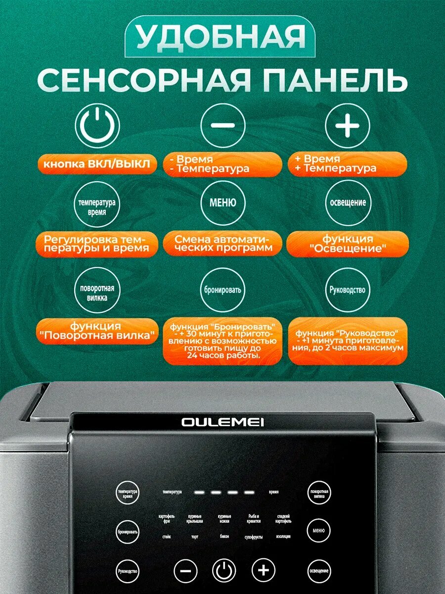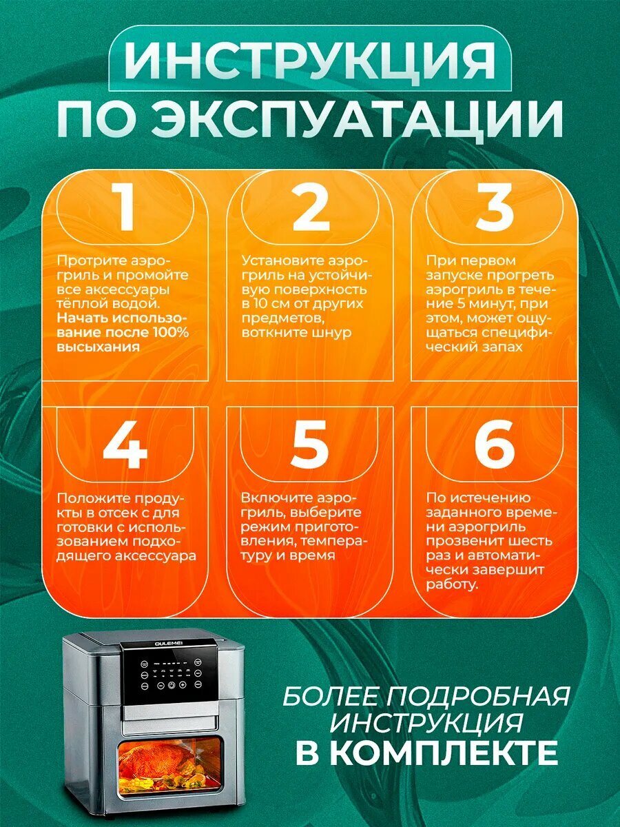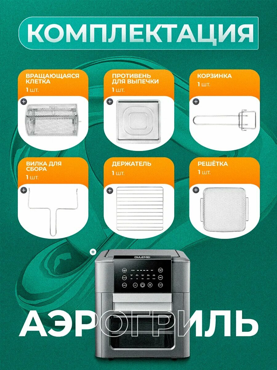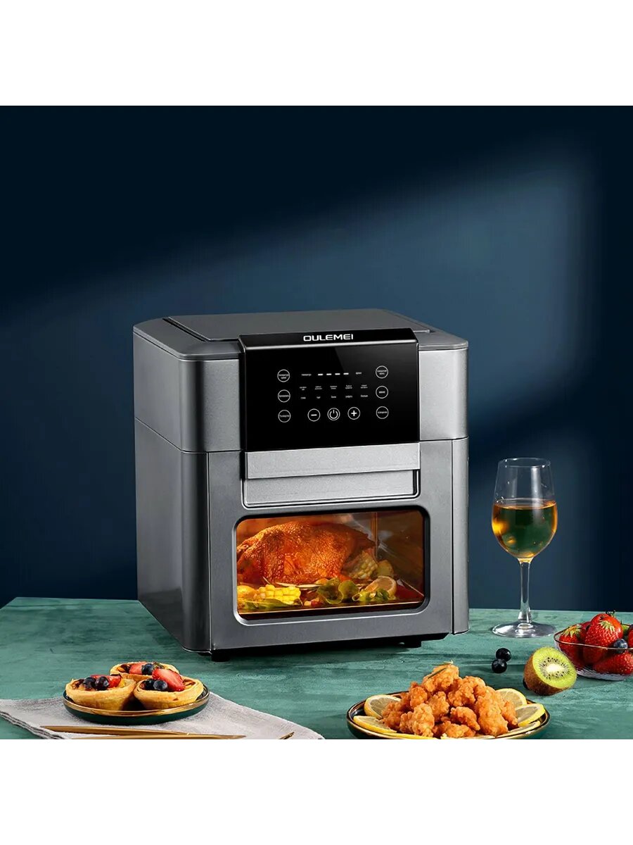 Аэрогриль электрический, 12 литров, 1600 Вт, 9 программ, черный, серебристый интересное: