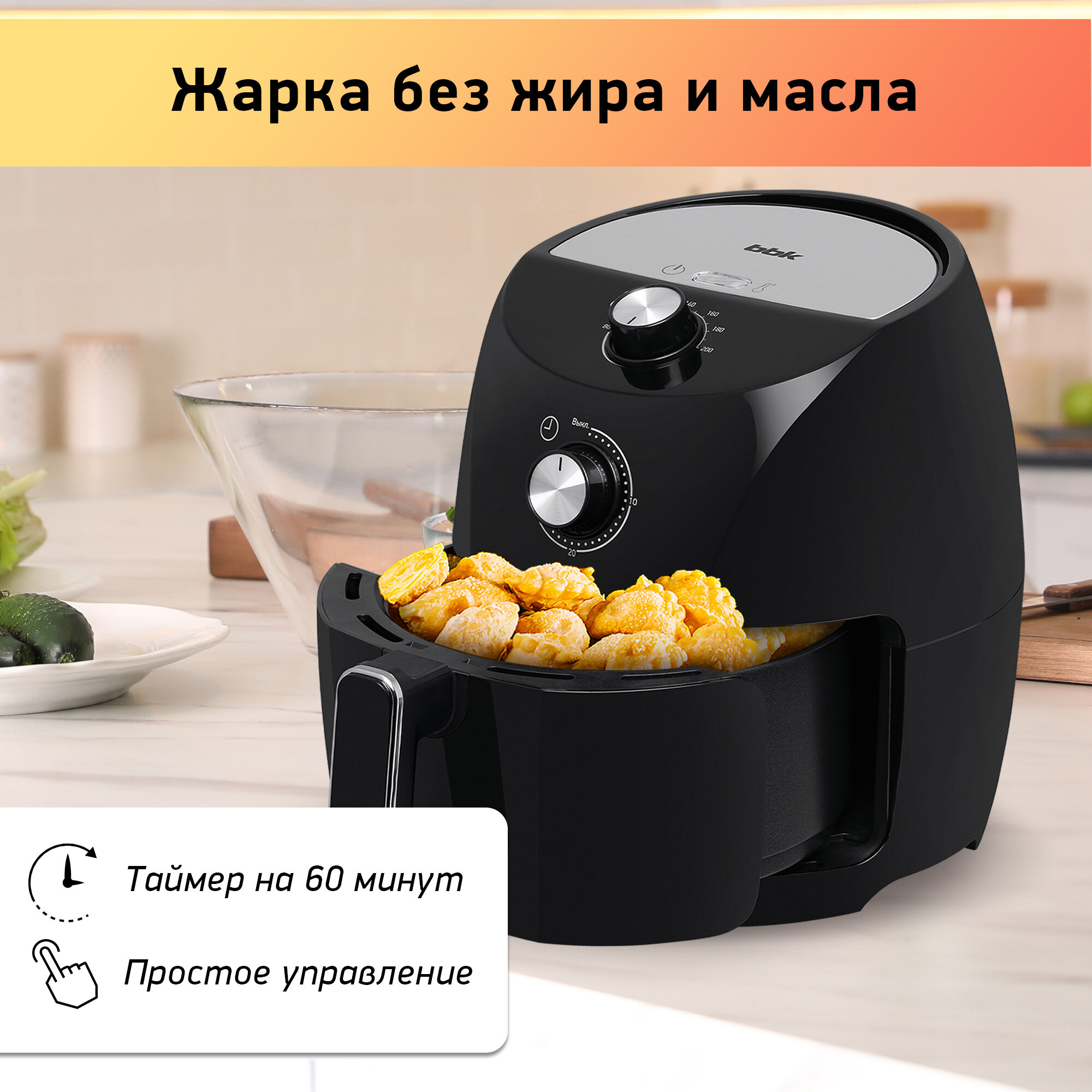 Аэрогриль с антипригарным покрытием BBK AF325 черный, объем чаши 3,2 л, мощность 1400 Вт интересное: