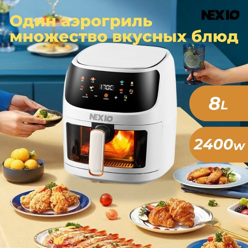Аэрогриль, 8 литров, 2400 Вт, 8 режимов, прозрачное окно, сенсорный экран. интересное: