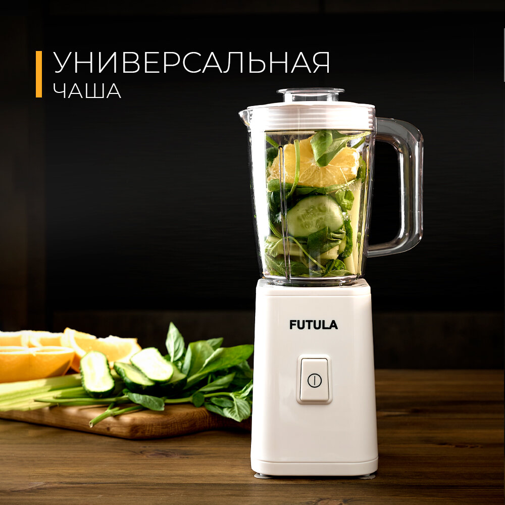 Блендер стационарный Futula HB4 белый, мощность 500 Вт, объем 800 мл, с бутылкой шейкером интересное: