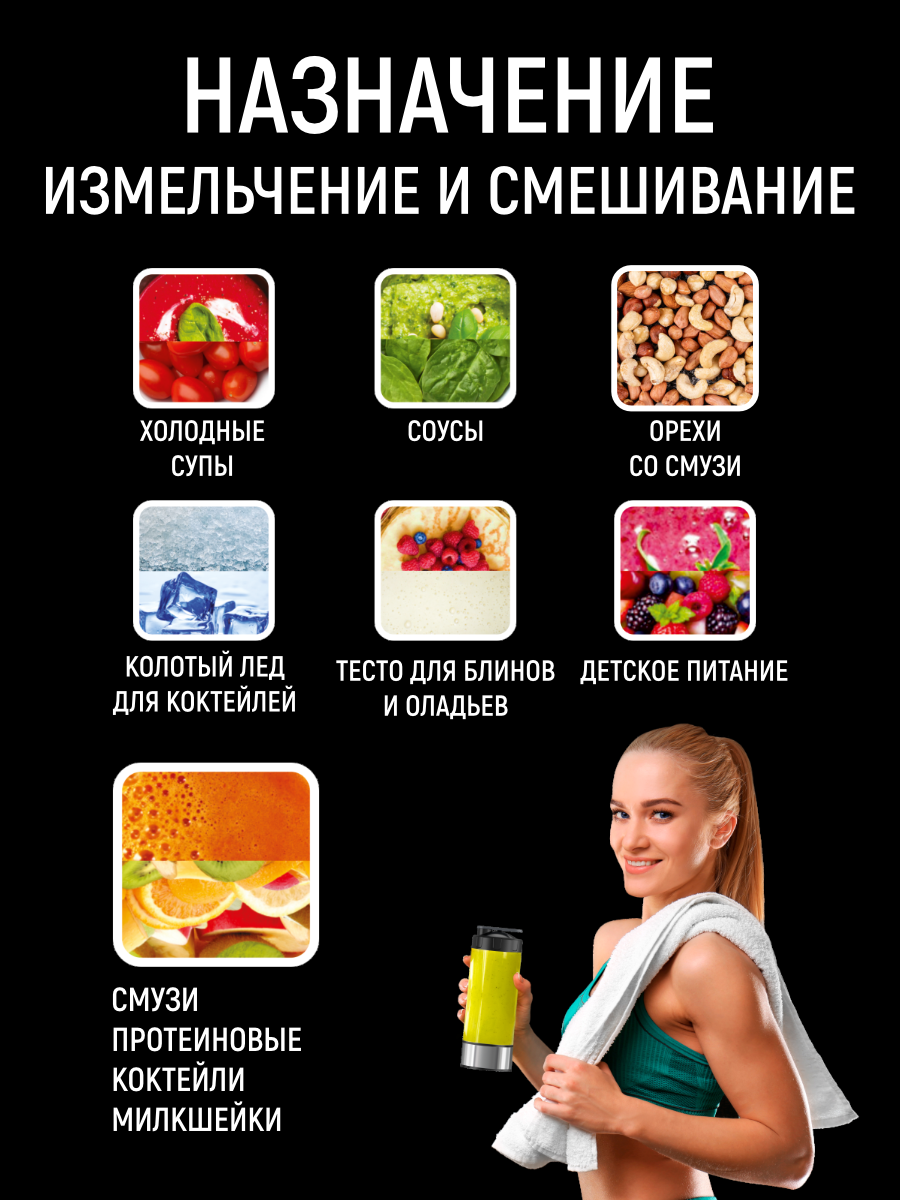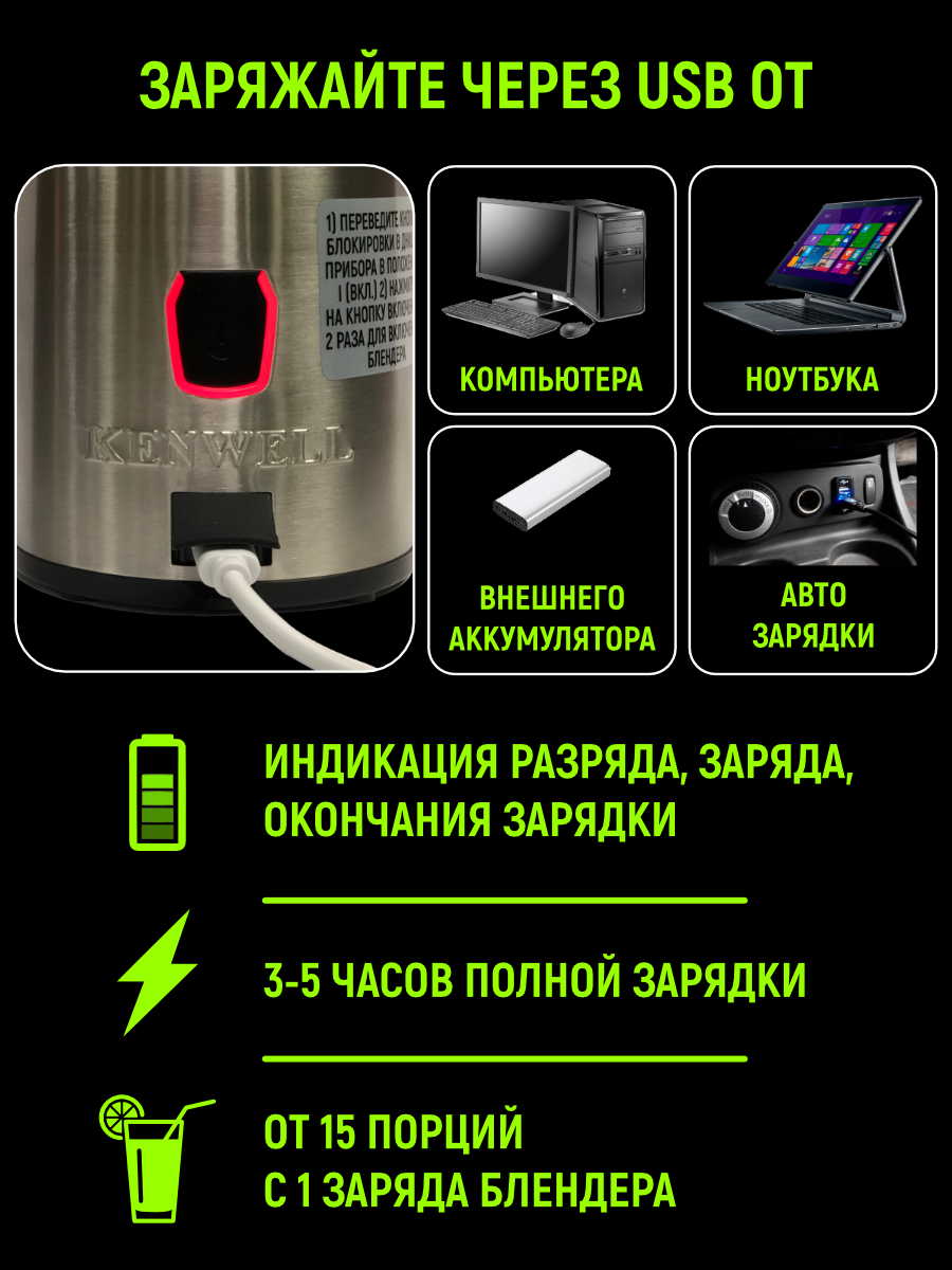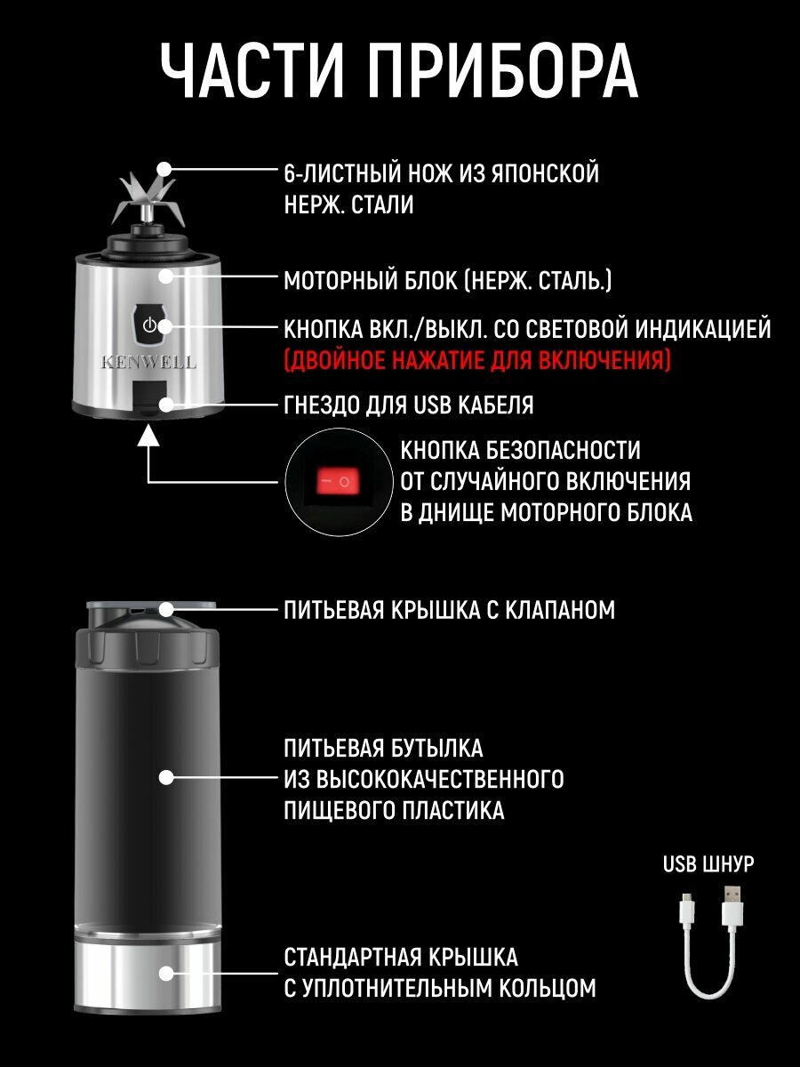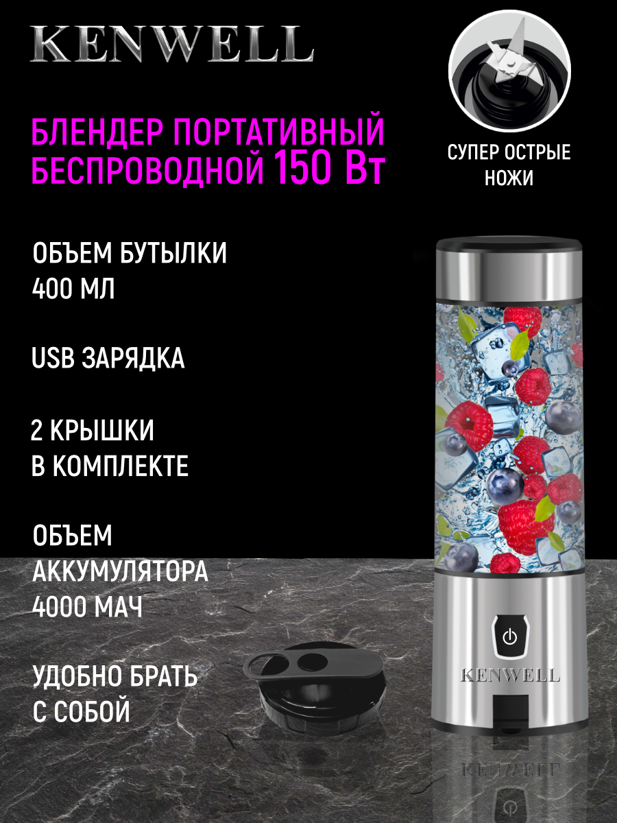 Блендер портативный 400 мл беспроводной KENWELL интересное: