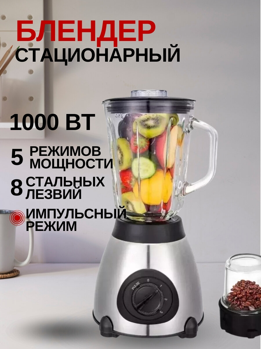 Блендер cтационарный для смузи и коктейлей, измельчитель, кофемолка, блендер со стеклянной чашей 1,5л электрический интересное: