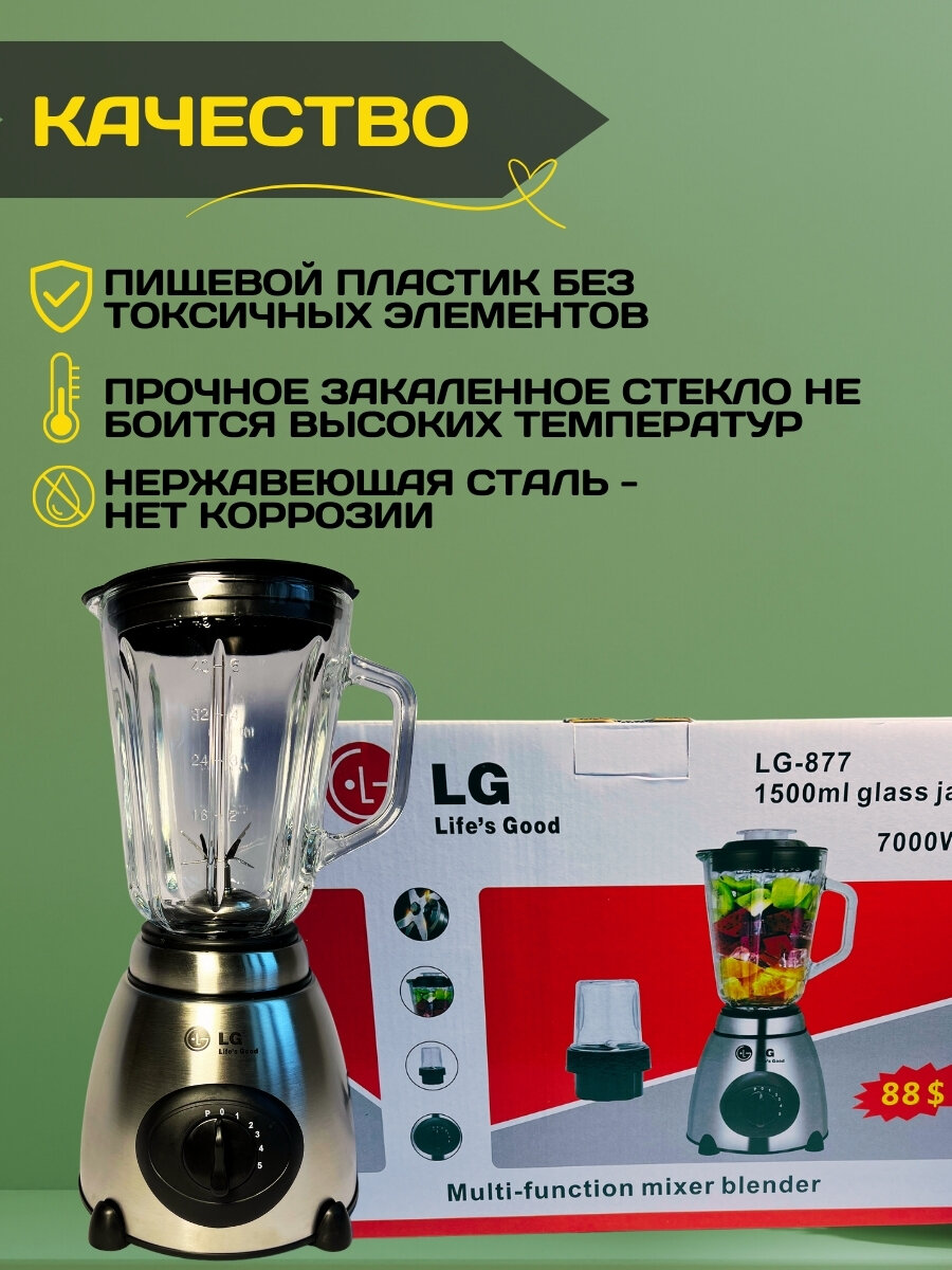 Блендер для смузи стационарный, для измельчения льда, кофемолка, кувшин 1.5 литра, импульсный режим интересное: