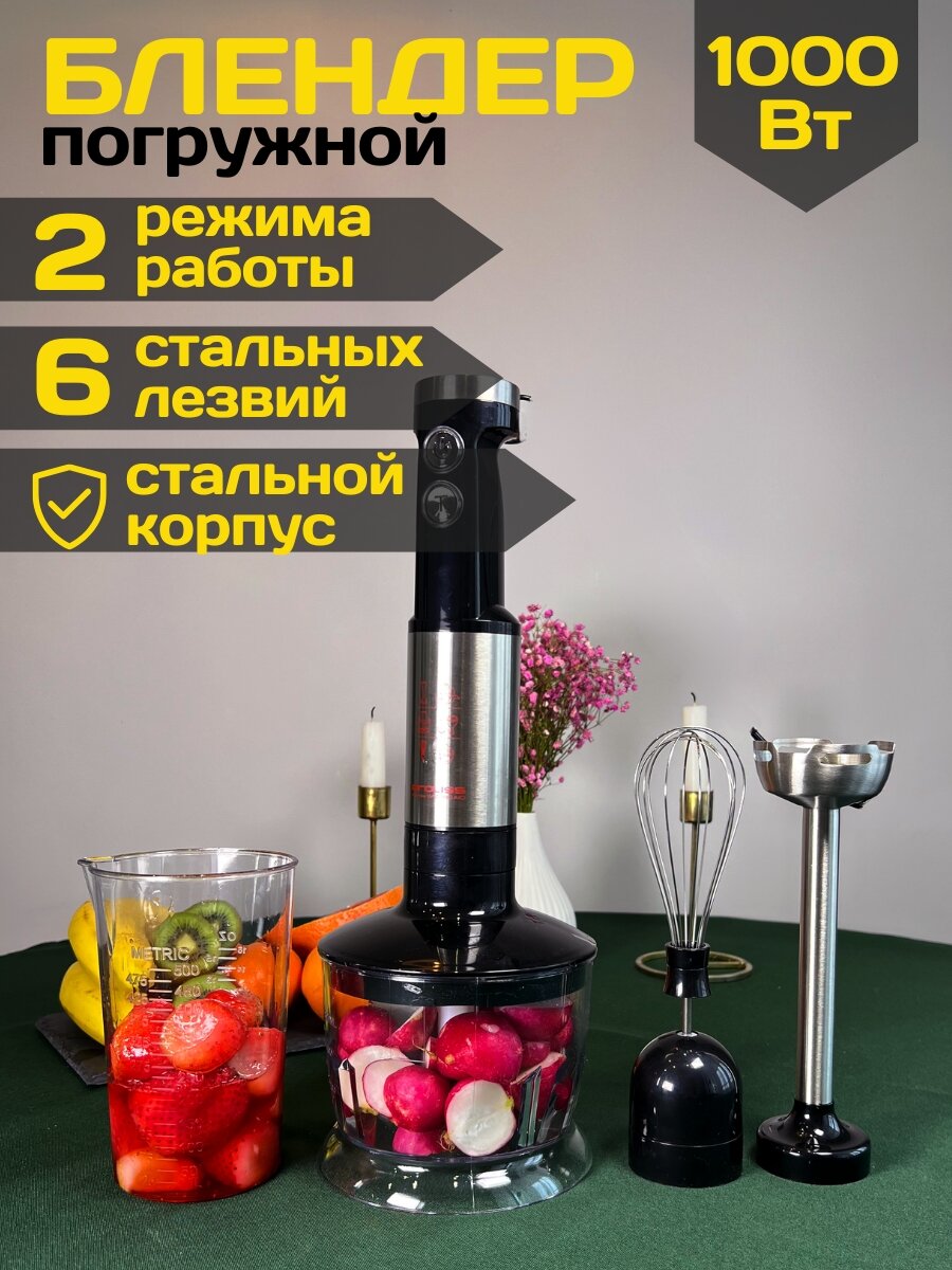 Cozy Home Premium / Погружной блендер 3в1 / Электрический кухонный измельчитель продуктов / Чоппер / Кухонный комбайн