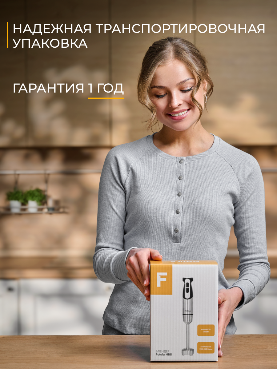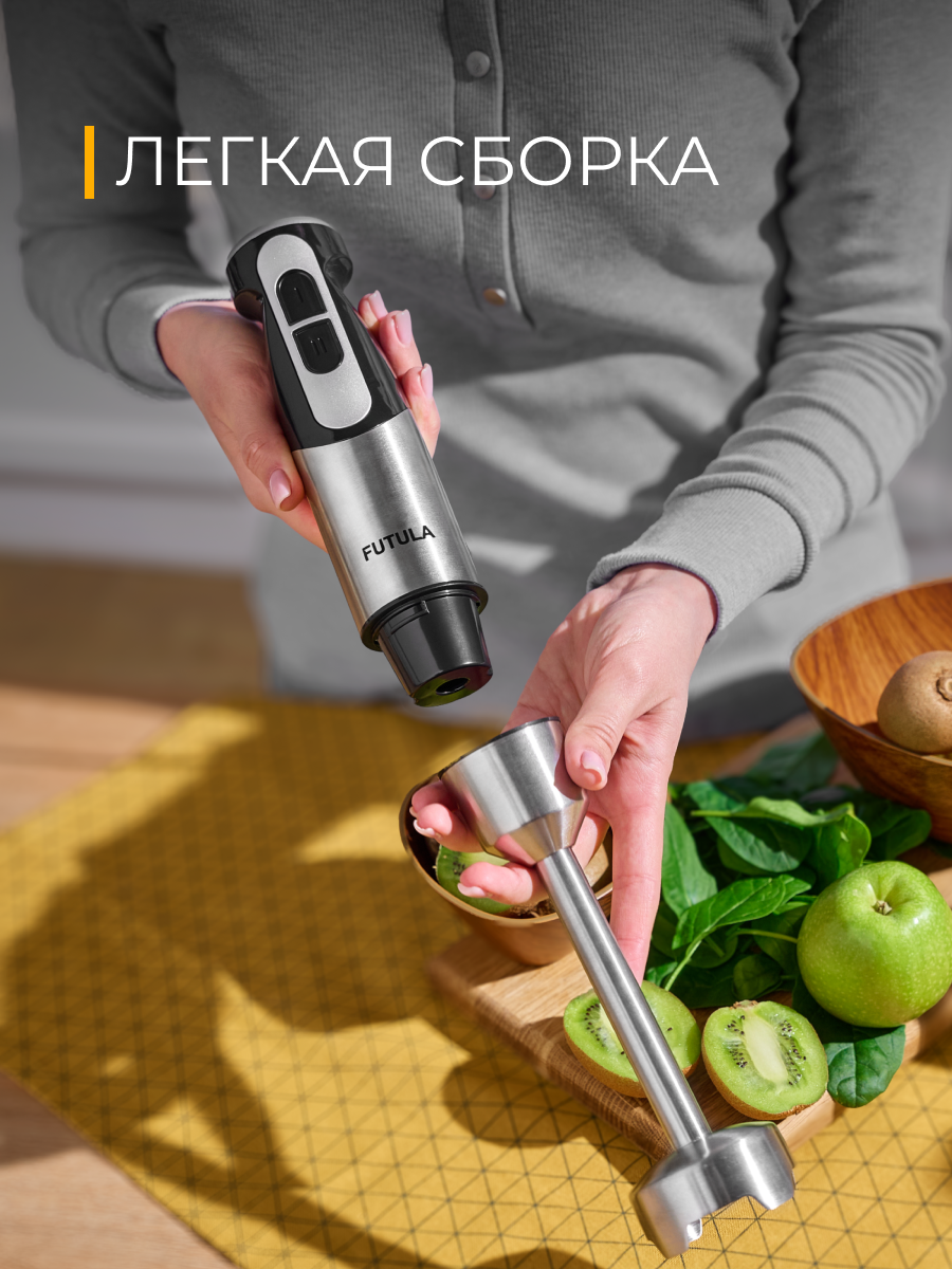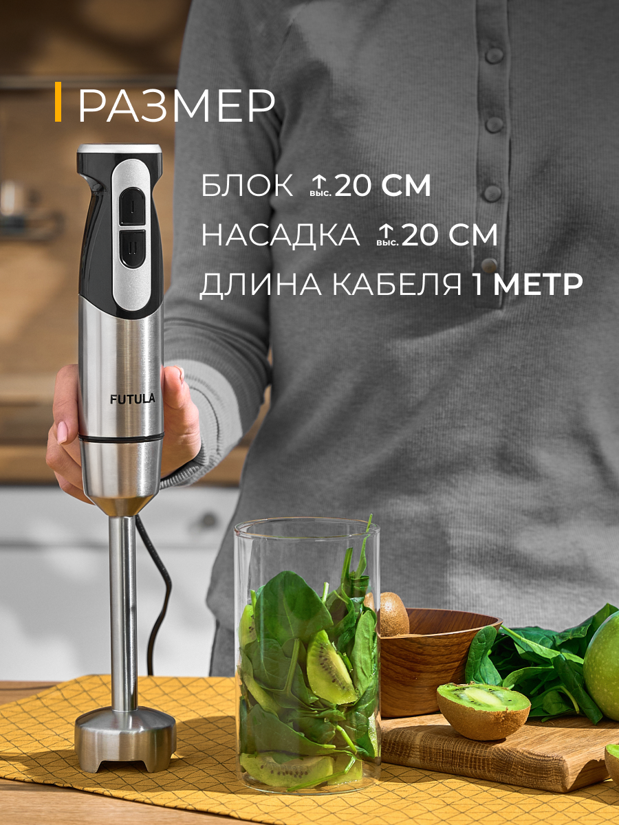 Блендер погружной Futula HB8 серый, мощность 1300Вт, 2 скорости интересное: