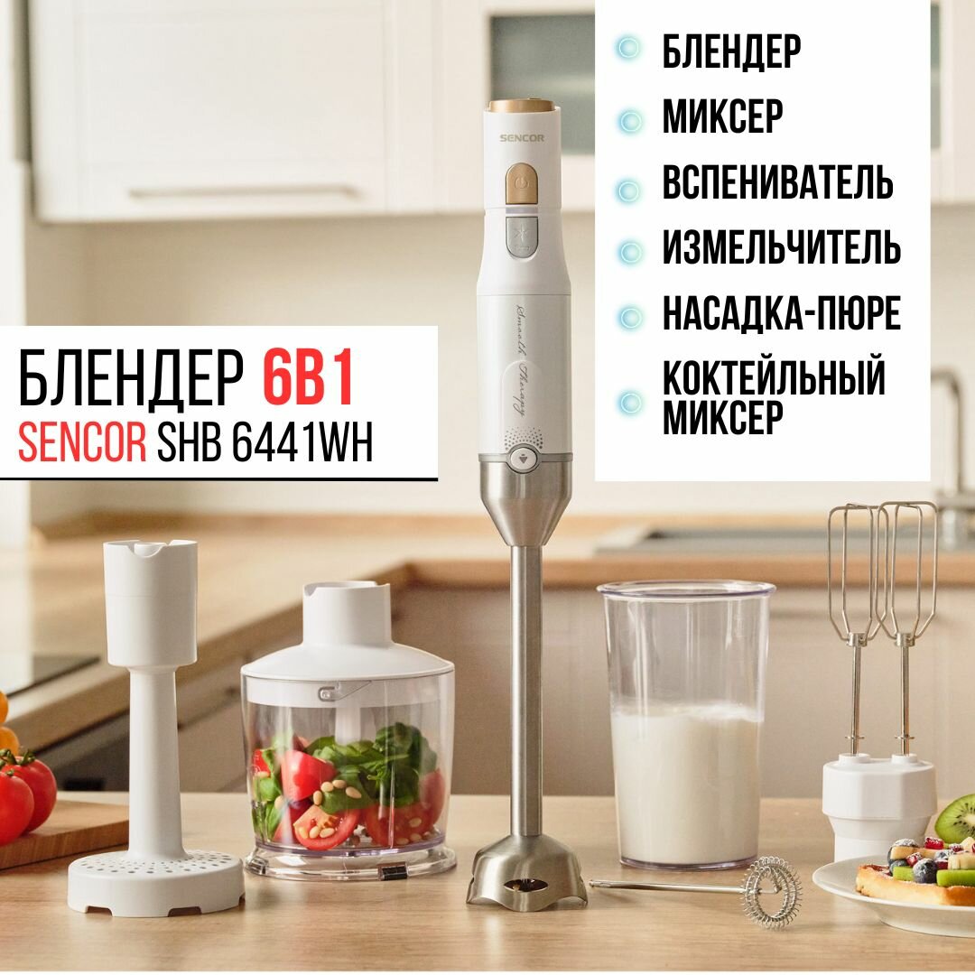 Купить Блендер погружной с насадкой для пюре 6 в 1 Sencor SHB 6441 WH