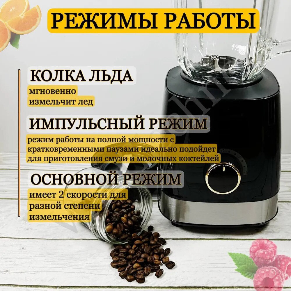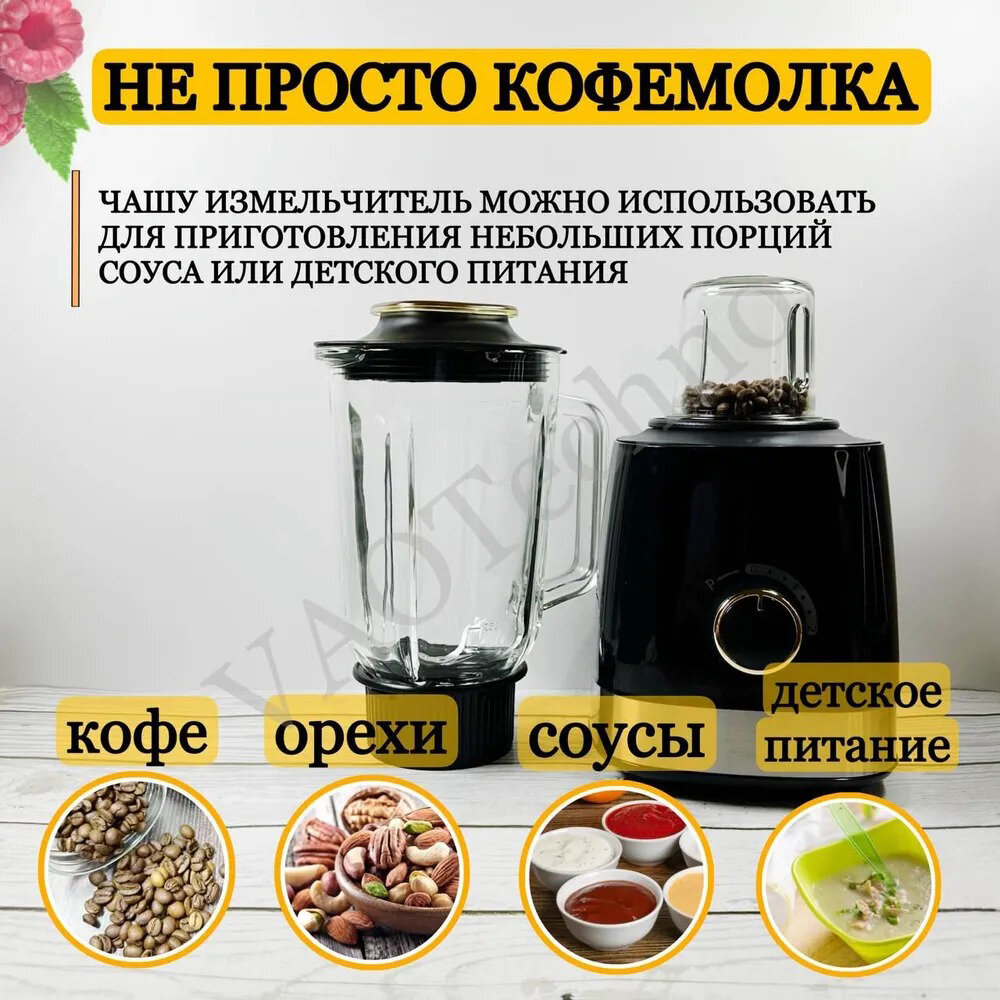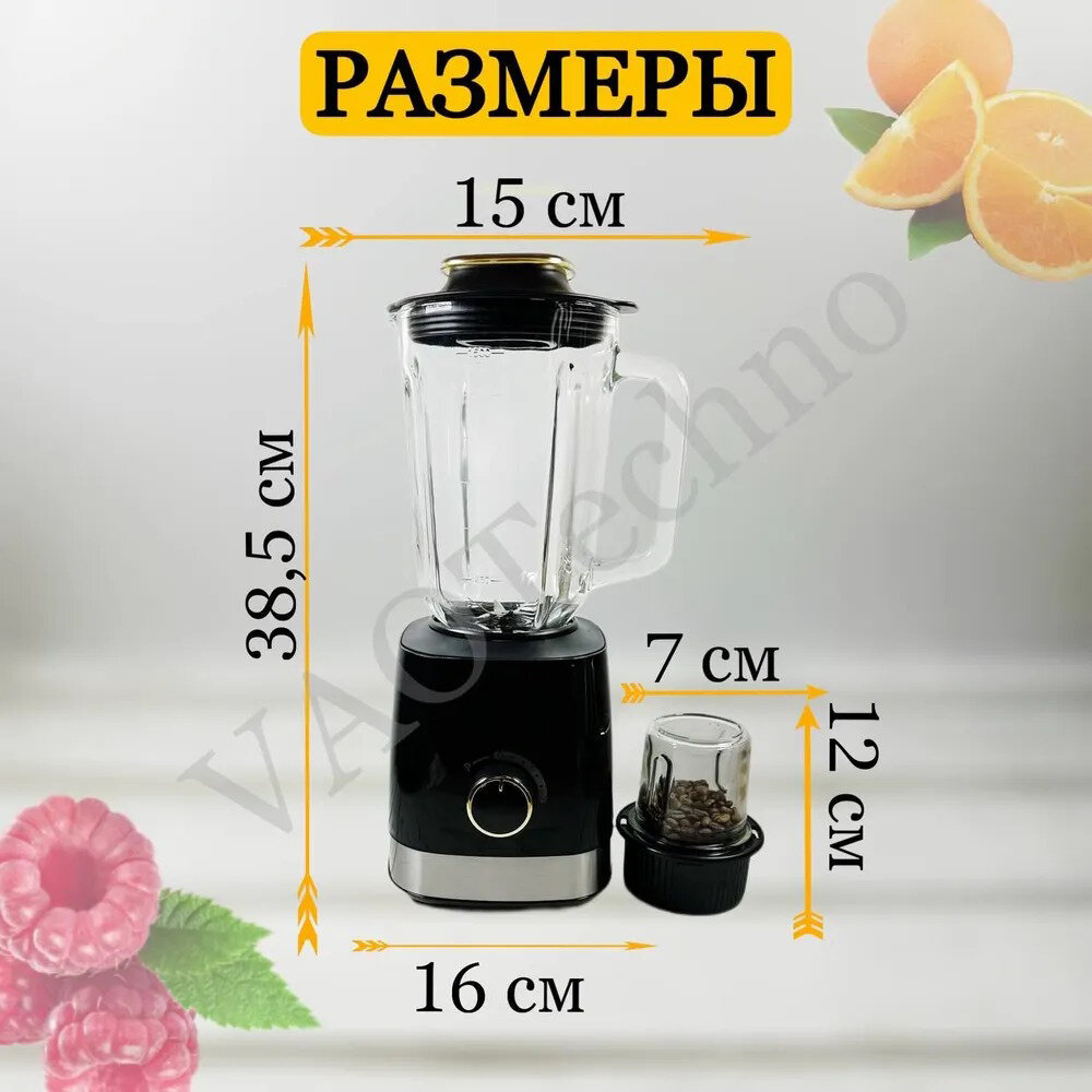 Блендер домашний/стационарный/для измельчения льда/для смузи/кофемолка/1000 Вт, кувшин 1.5 литра, импульсный режим,3 скорости работы, черный интересное: