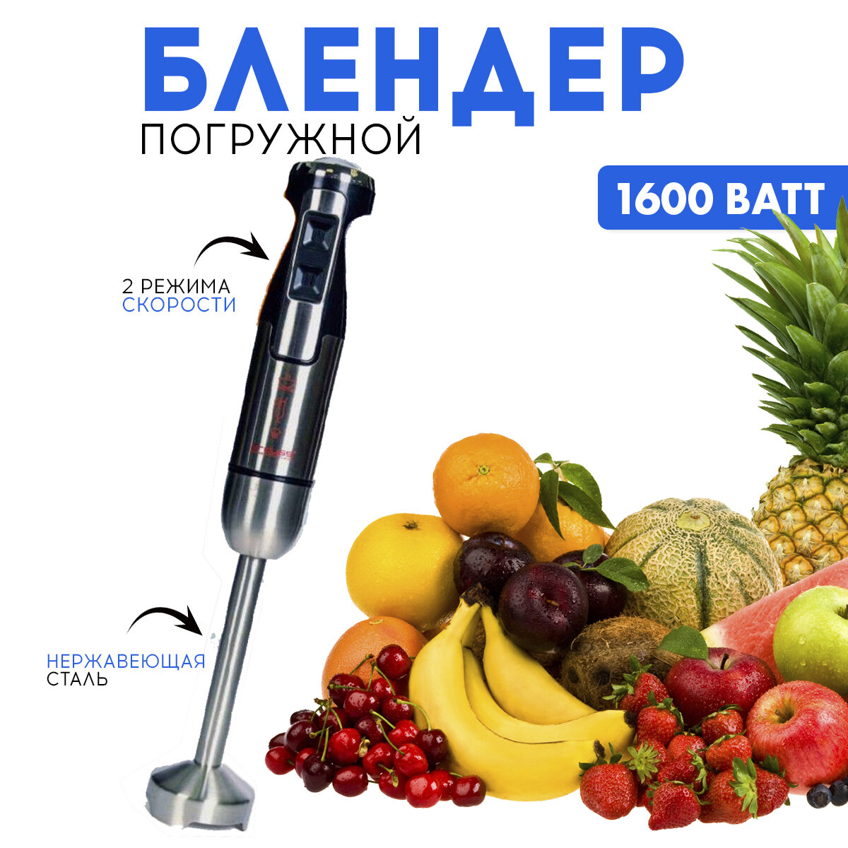 Блендер погружной, для измельчение и смешивание, блендер для смузи, турборежим, 1600 Вт интересное: