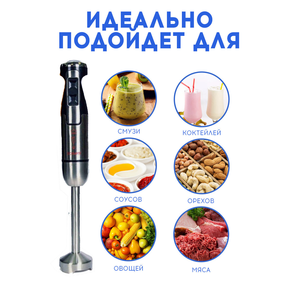 Купить Блендер погружной, для измельчение и смешивание, блендер для смузи, турборежим, 1600 Вт