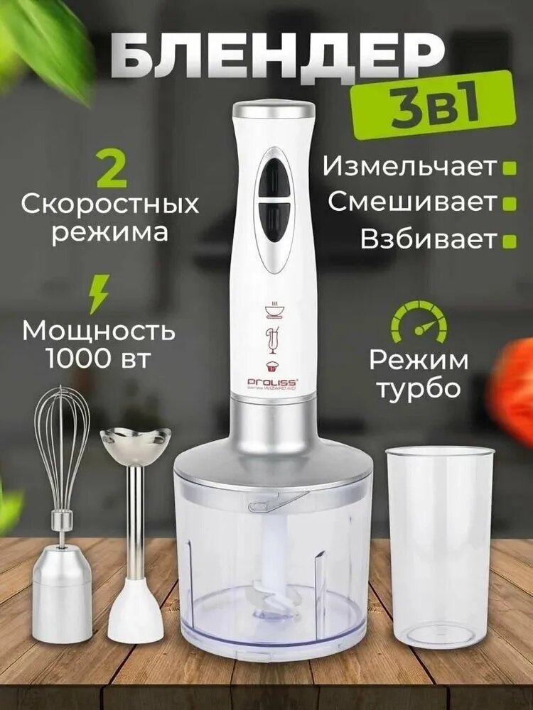 Блендер погружной измельчитель, миксер, блендер для смузи, 2 скорости, мощность 1000Вт, белый интересное: