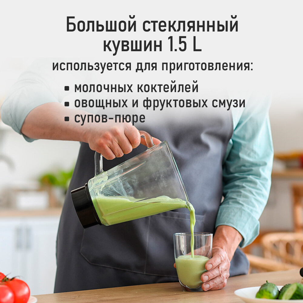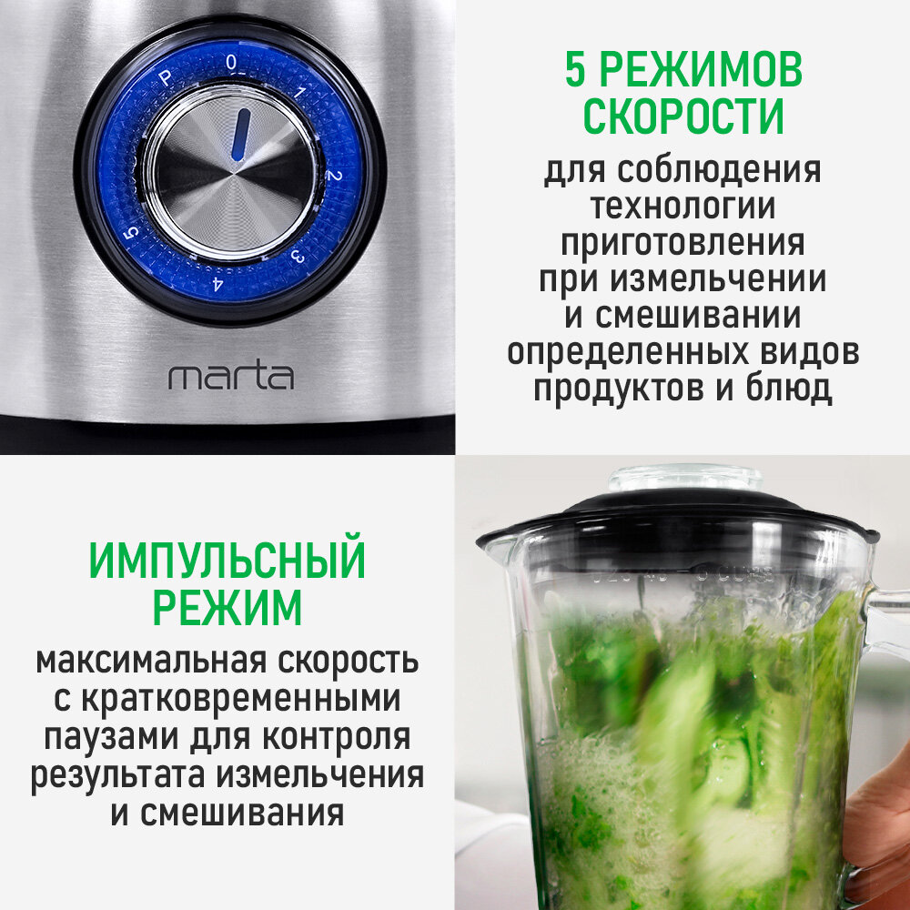 Блендер MARTA MT-KP1534C, мощность 2000Вт, стеклянный кувшин 1,5л, черный/стальной интересное: