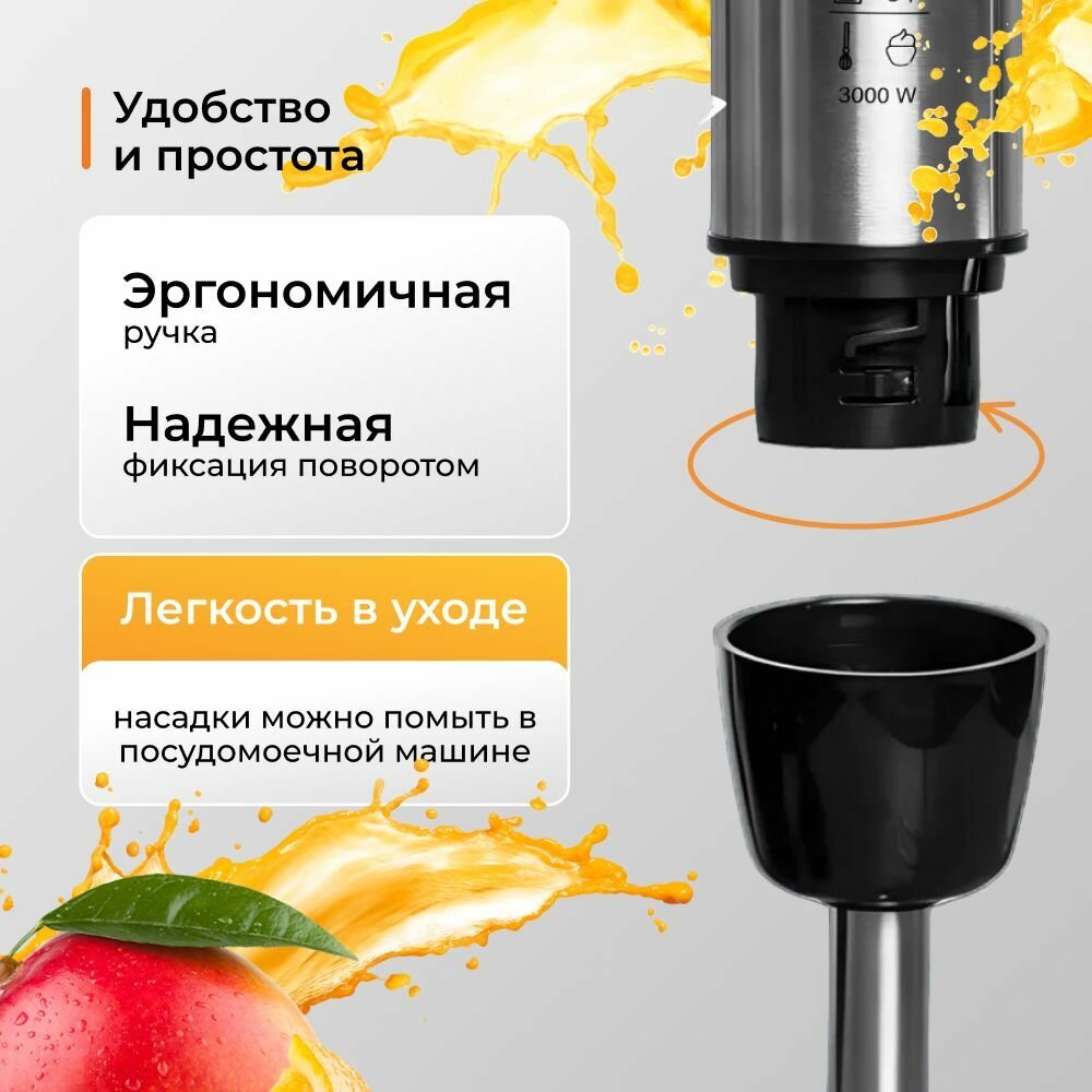 Купить Многофункциональный блендер погружной HALEY-1114 с регулятором мощности, турбо режим2 скоростями, 1200 Вт, черный, серый металлик