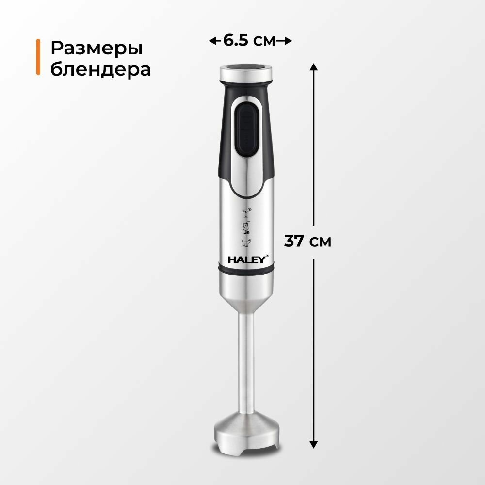 4в1 Блендер погружной HALEY-1017 с регулятором мощности: 1600 Вт кухонный измельчитель (чоппер), блендер, ручной миксер, мерный стакан (600 мл), черный, серый металлик
