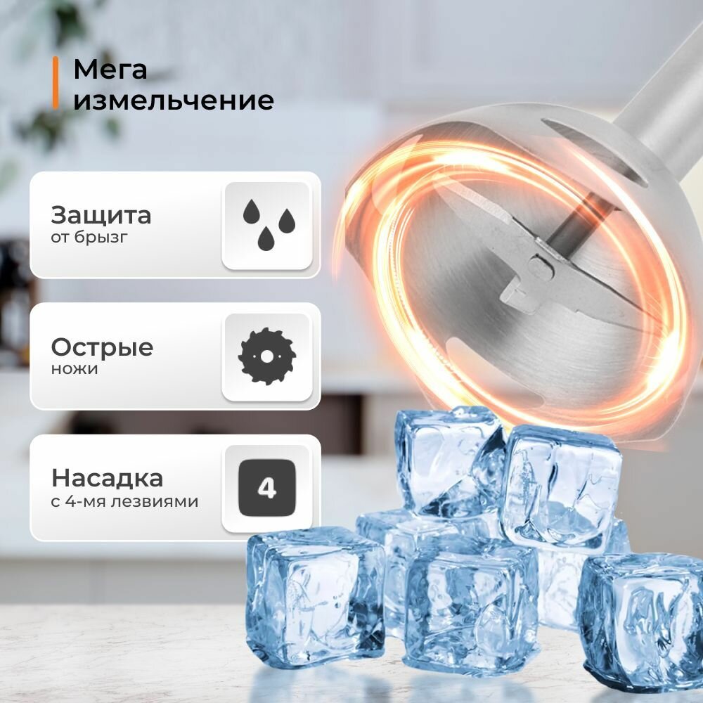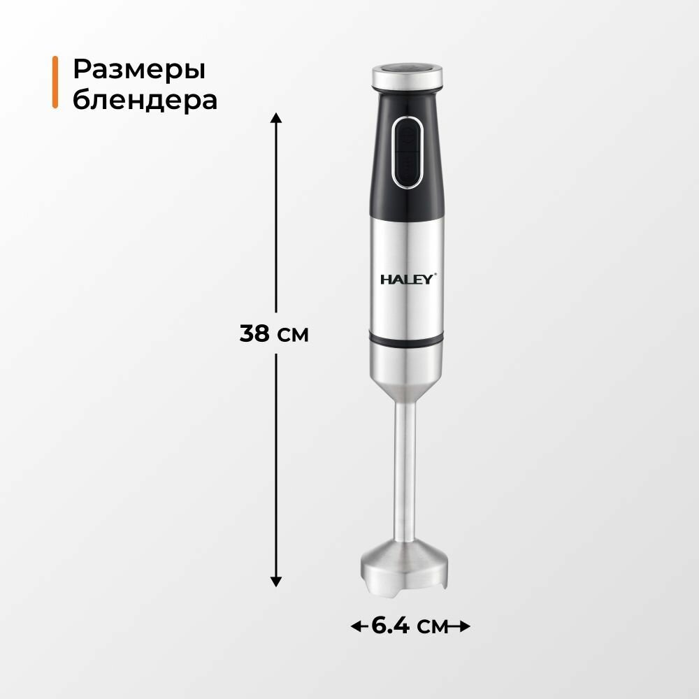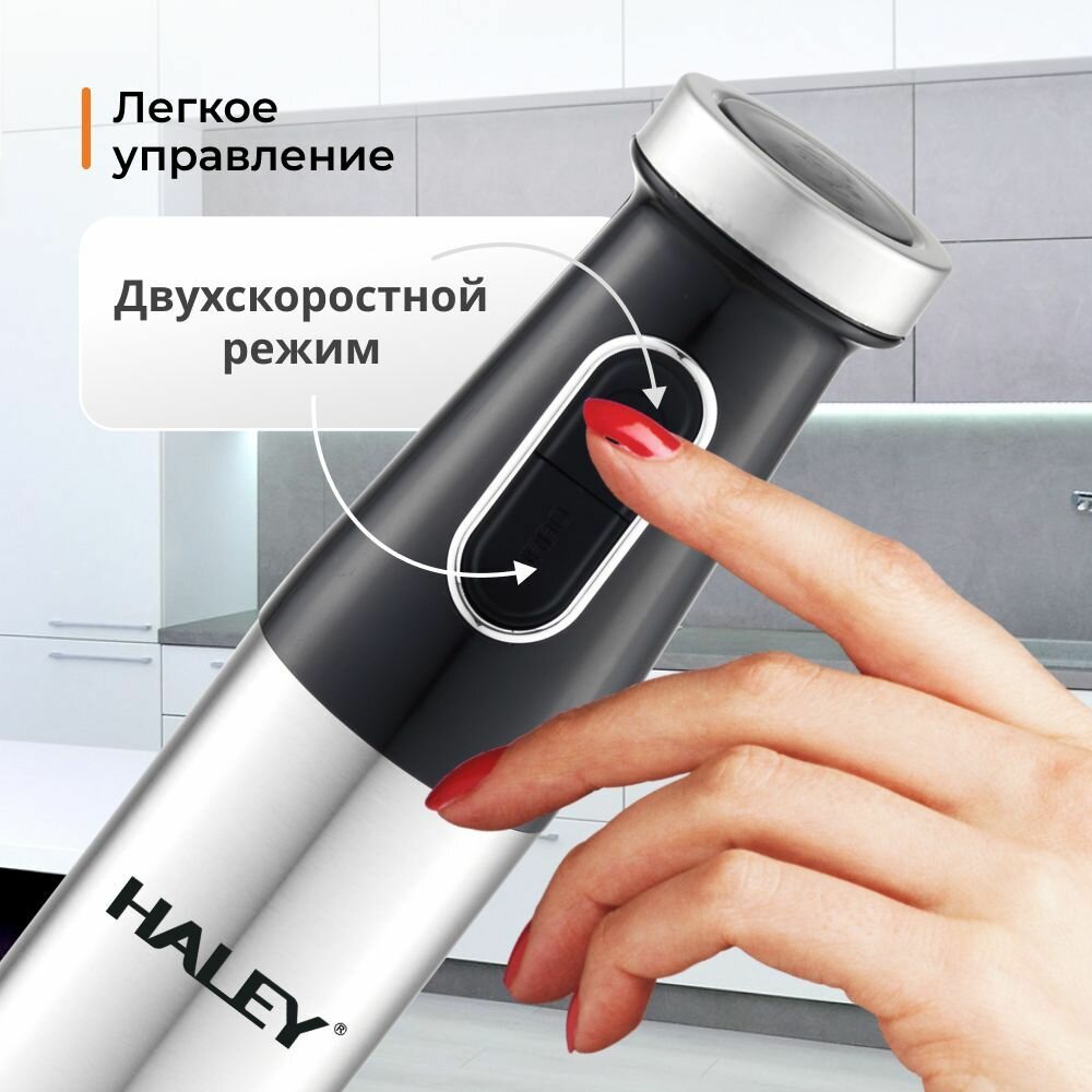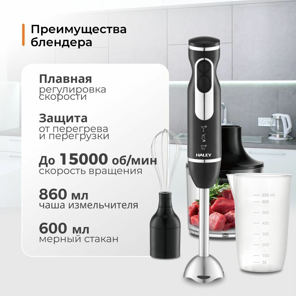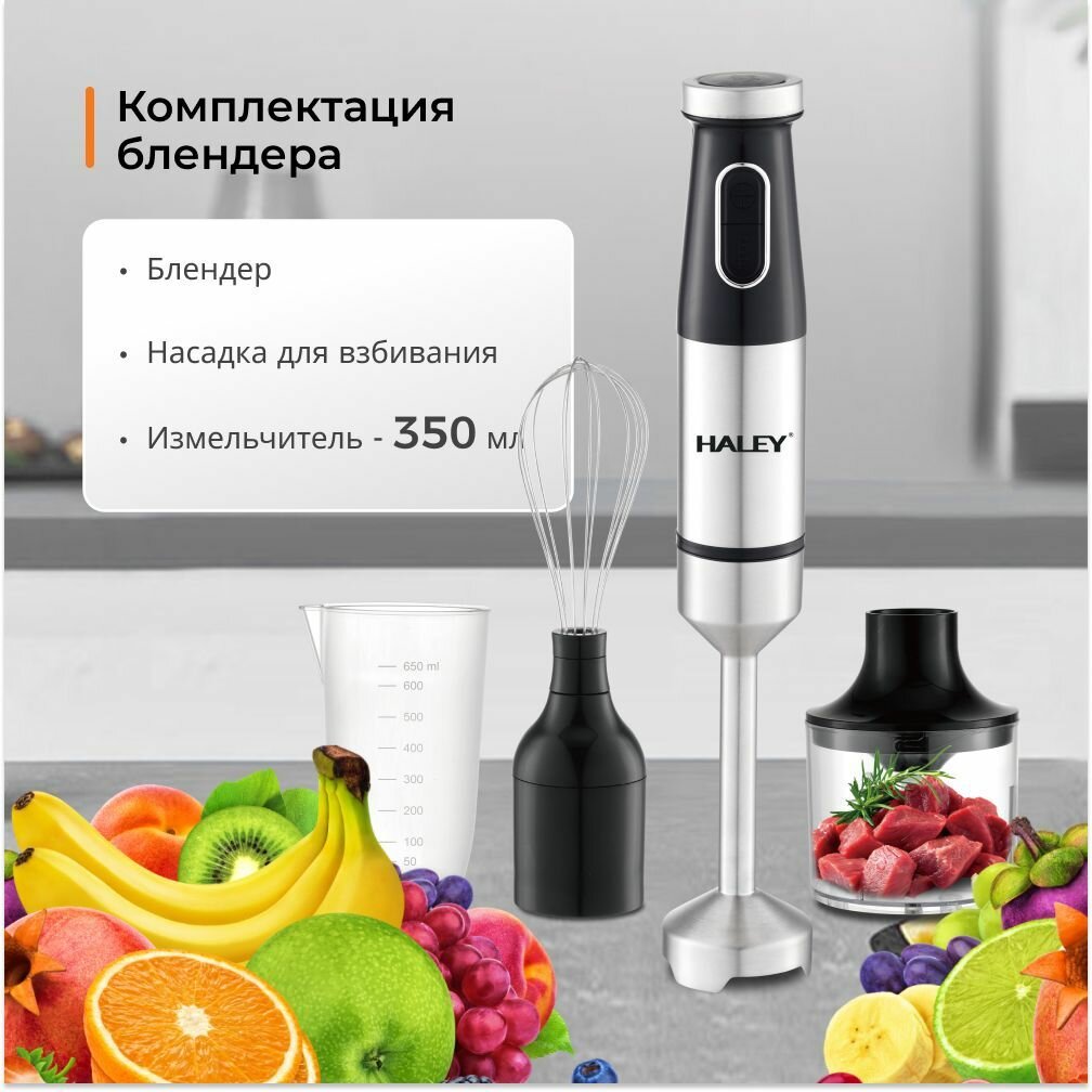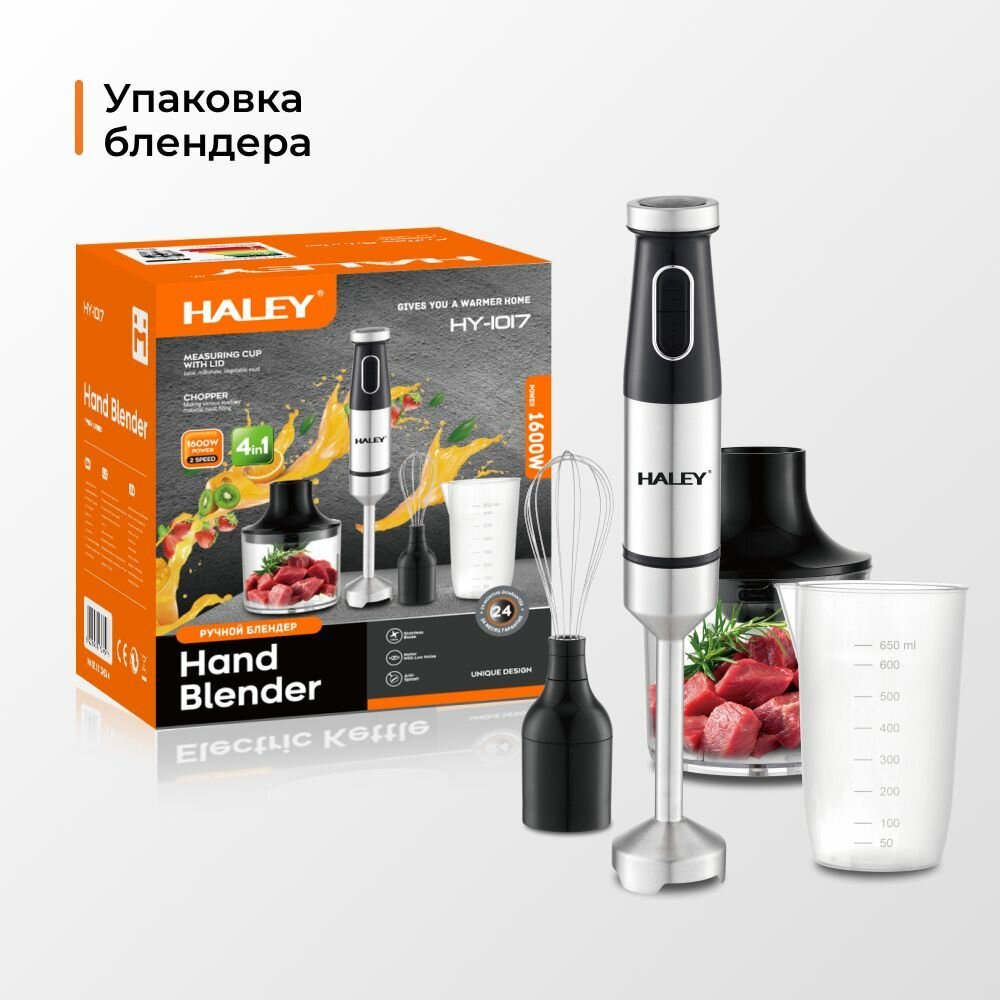 Купить 4в1 Блендер погружной HALEY-1017 с регулятором мощности: 1600 Вт кухонный измельчитель (чоппер), блендер, ручной миксер, мерный стакан (600 мл), черный, серый металлик