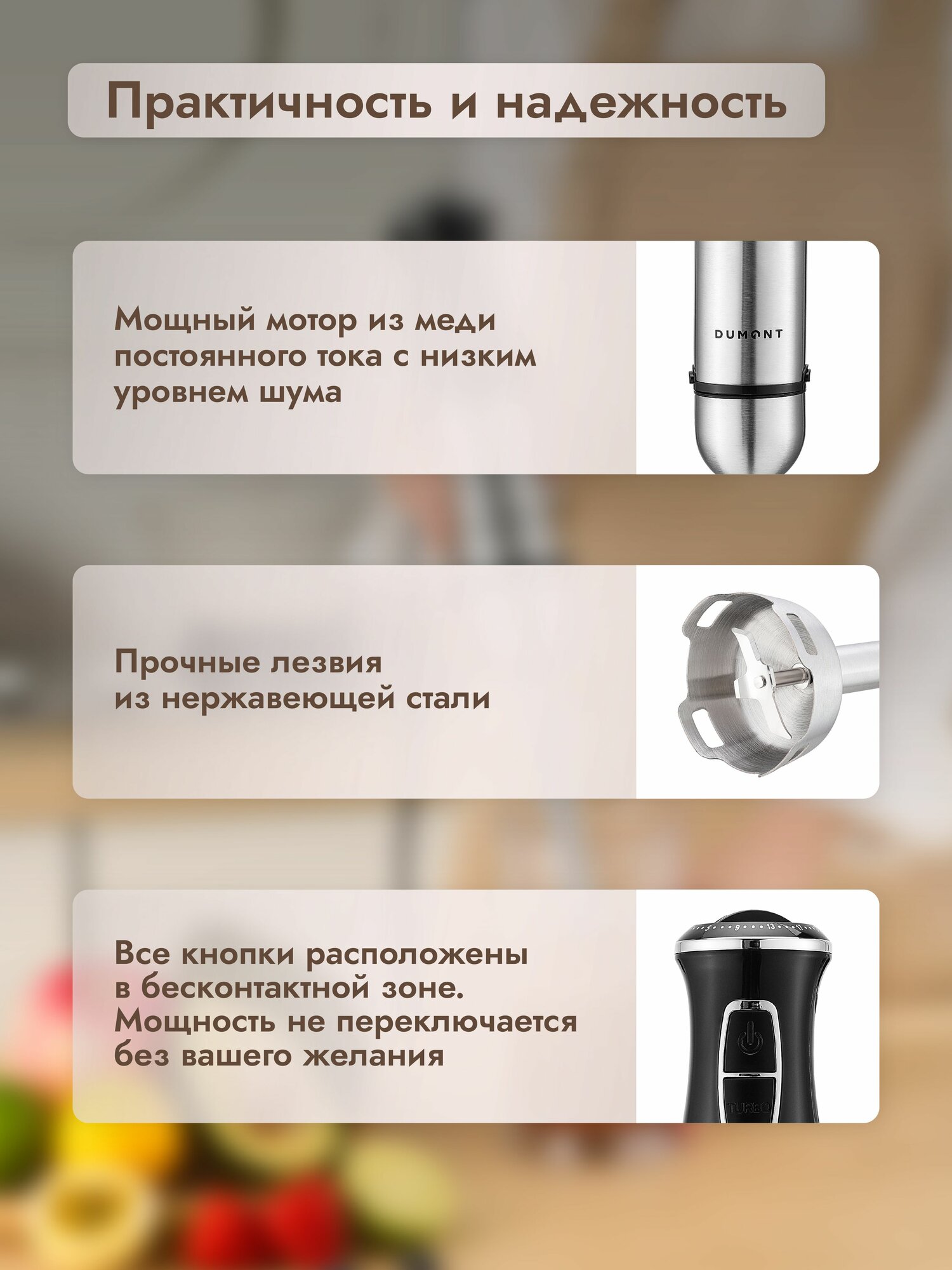 Блендер погружной Dumont DMBH-6004, низкий уровень шума, 1500 Вт, 21 скорость, черный интересное: