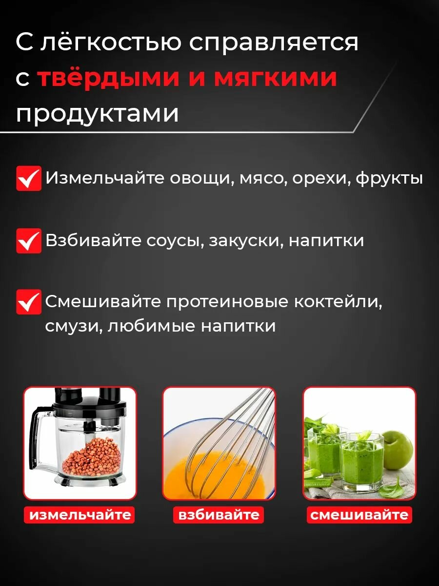 Блендер погружной 9в1, мощный 1800 Вт, 20 скоростей, режим TURBO