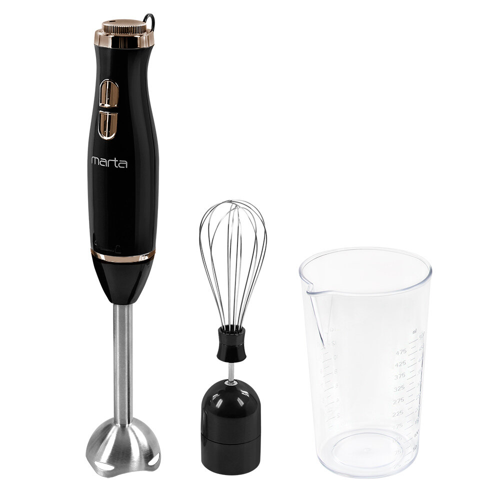 Купить Блендер MARTA MT-KP1597C, мощность 1200Вт, 2 насадки, венчик, мерный стакан