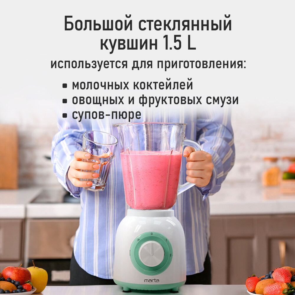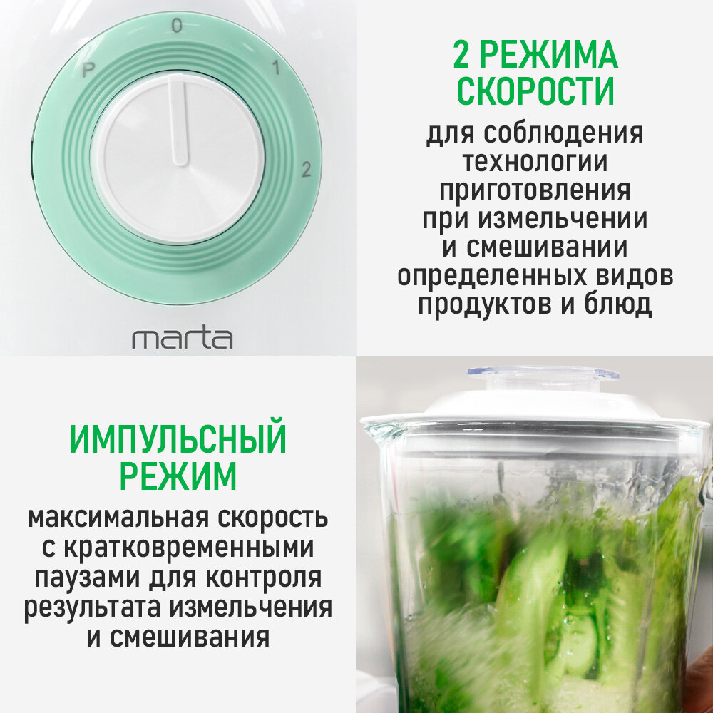 Блендер стационарный MARTA MT-KP1536A, противоскользящие ножки, защита от перегрева интересное: