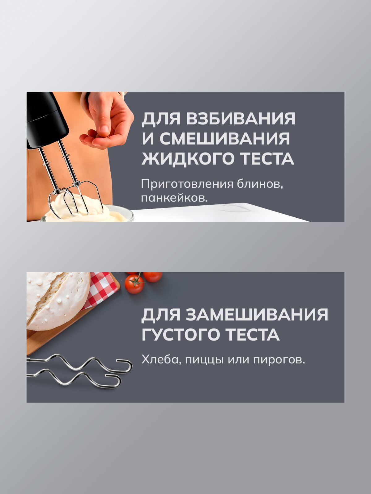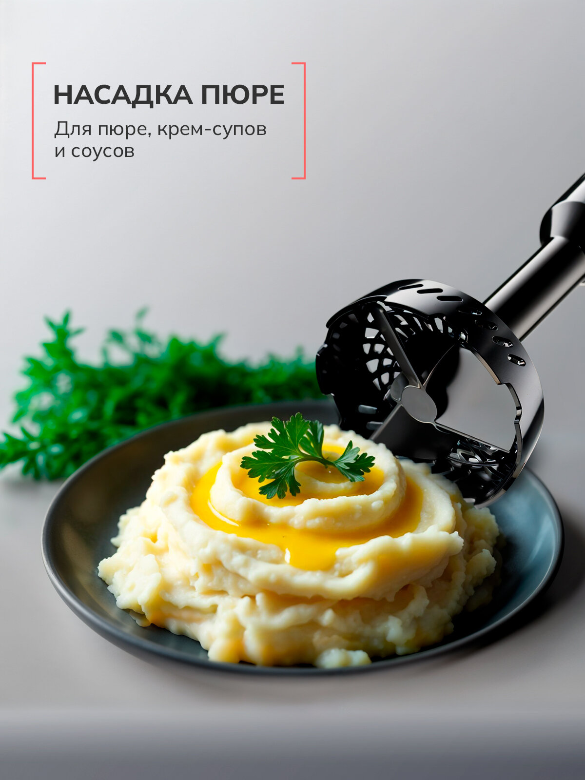 | Насадки | венчик для взбивания / для приготовления пюре / Для взбивания молочной пенки / насадка-блендер |