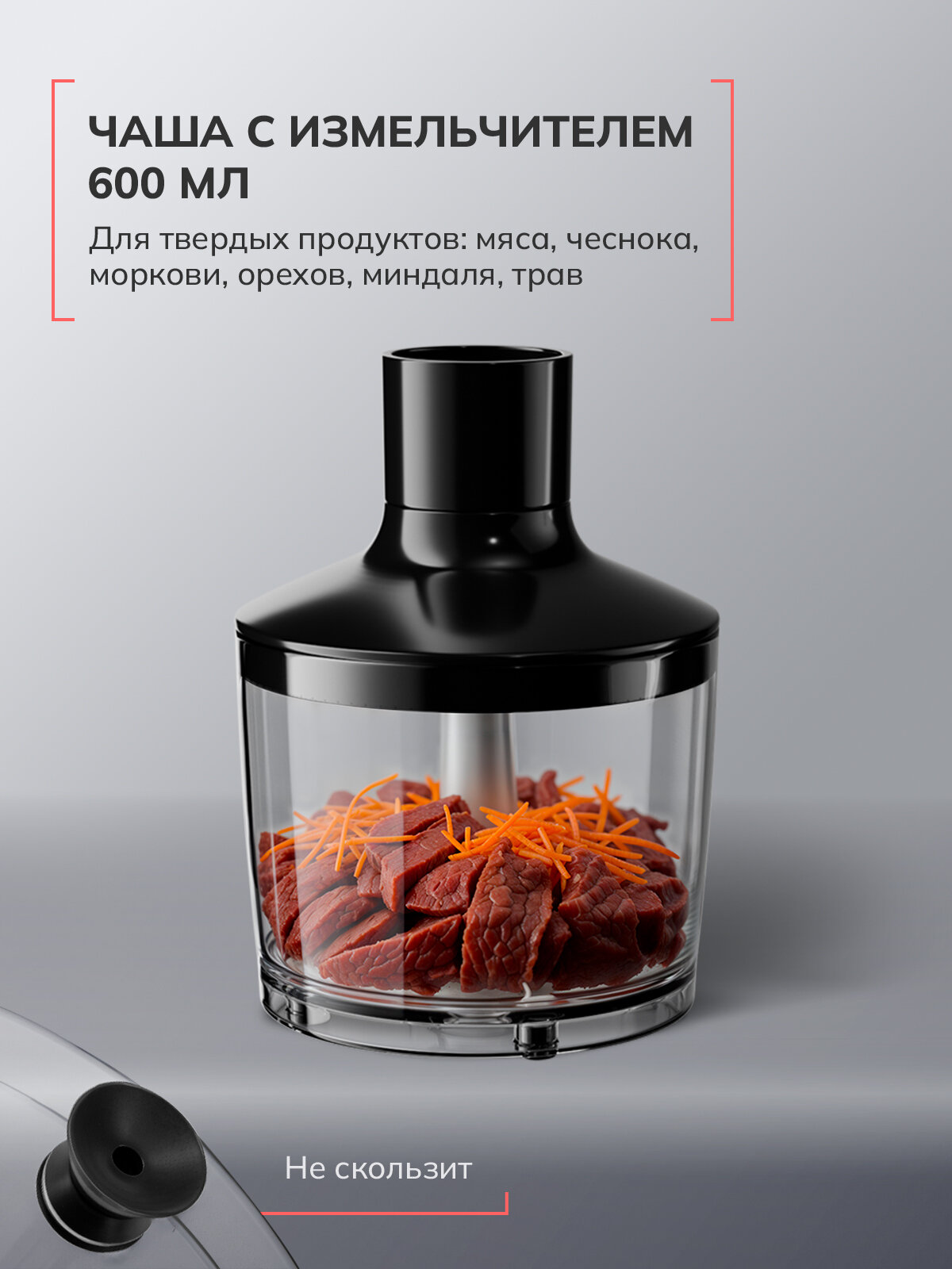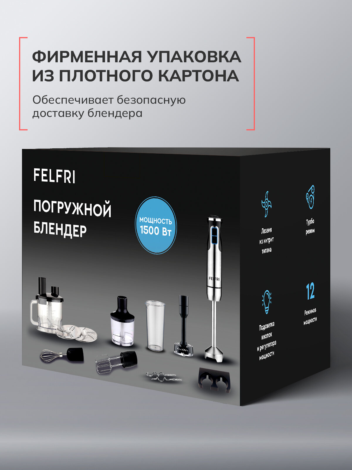 Погружной блендер Felfri, 1500Вт, 3 в 1, черный, серебристый, пластик