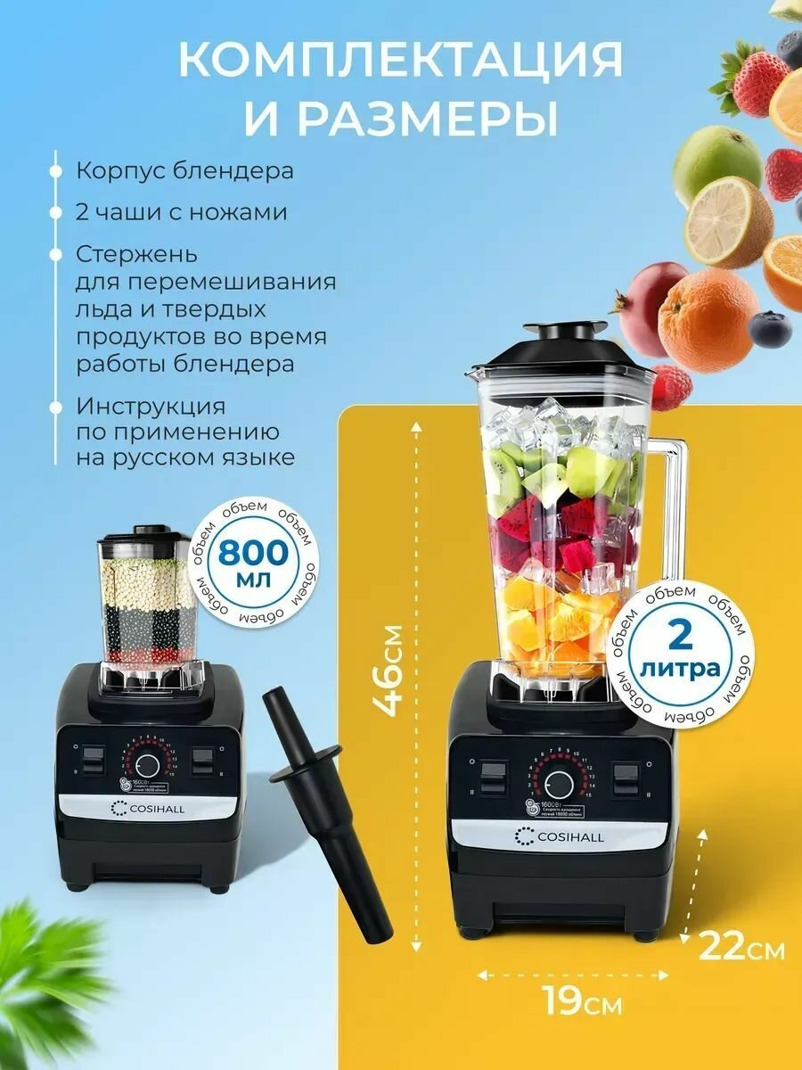 Блендер настольный стационарный, измельчитель кухонный, 1600Вт, 2л, черный интересное: