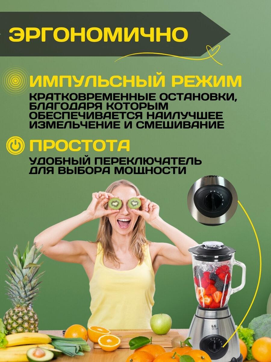 Блендер стационарный со стеклянной чашей/для измельчения льда/для смузи/кофемолка/кувшин 1.5 литра, импульсный режим интересное: