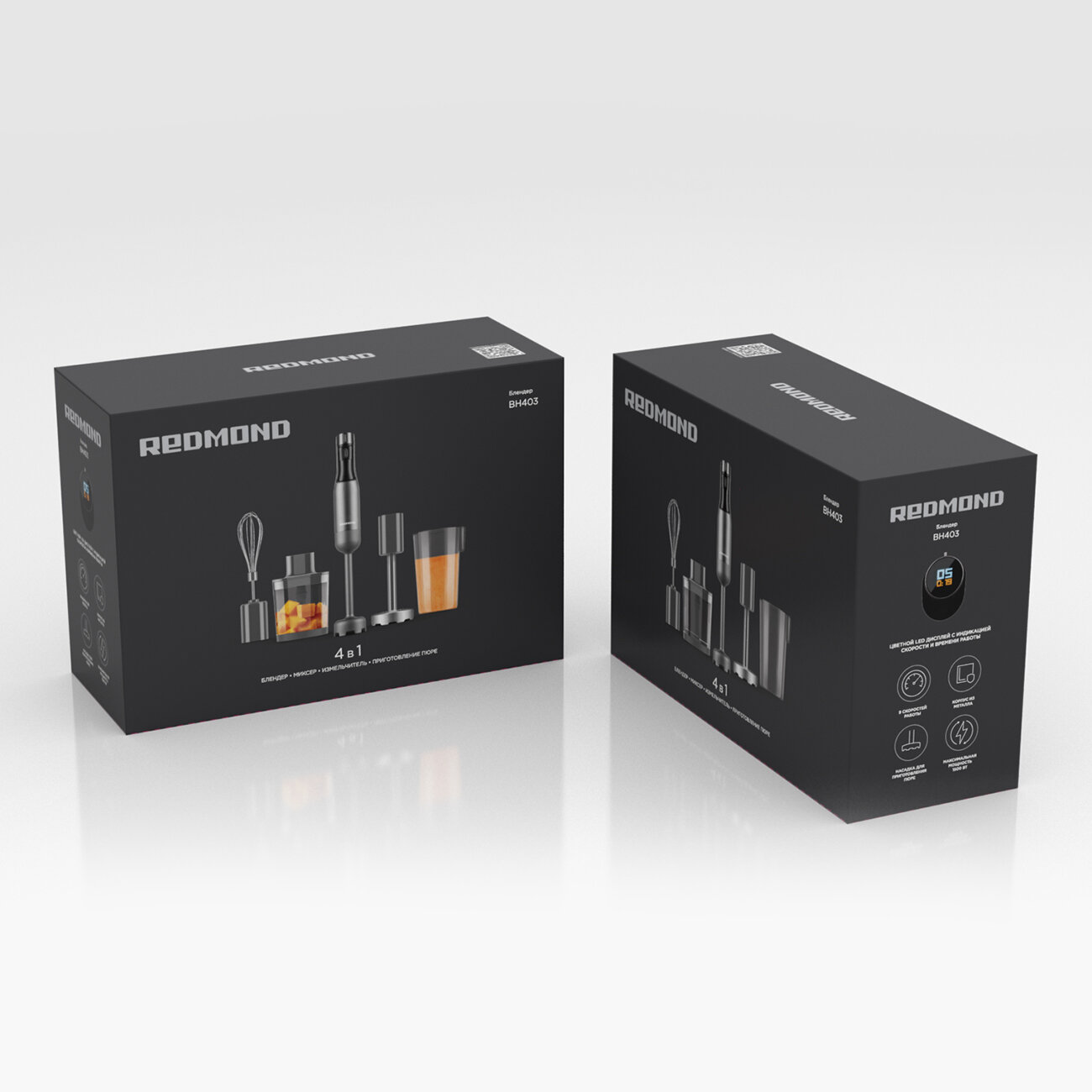 Блендер погружной REDMOND BH403, 4в1: блендер, миксер, измельчитель, насадка для пюре, 9 скоростей интересное: