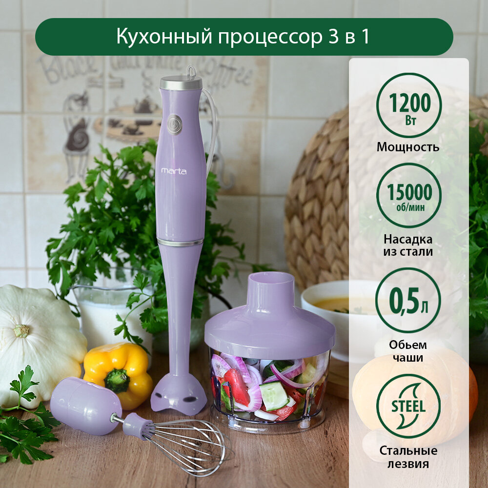 Купить Блендер погружной кухонный комбайн MARTA MT-1570 лиловый аметист