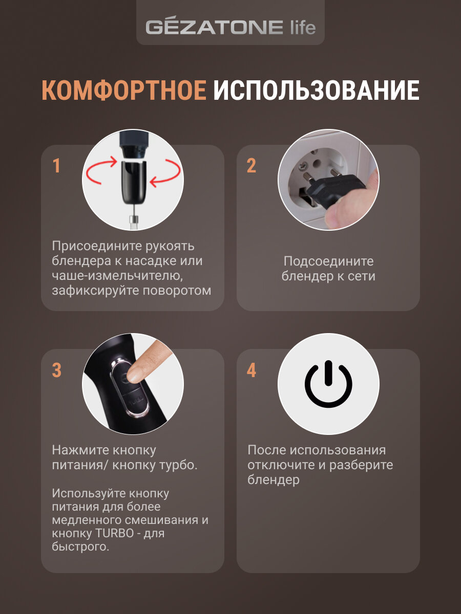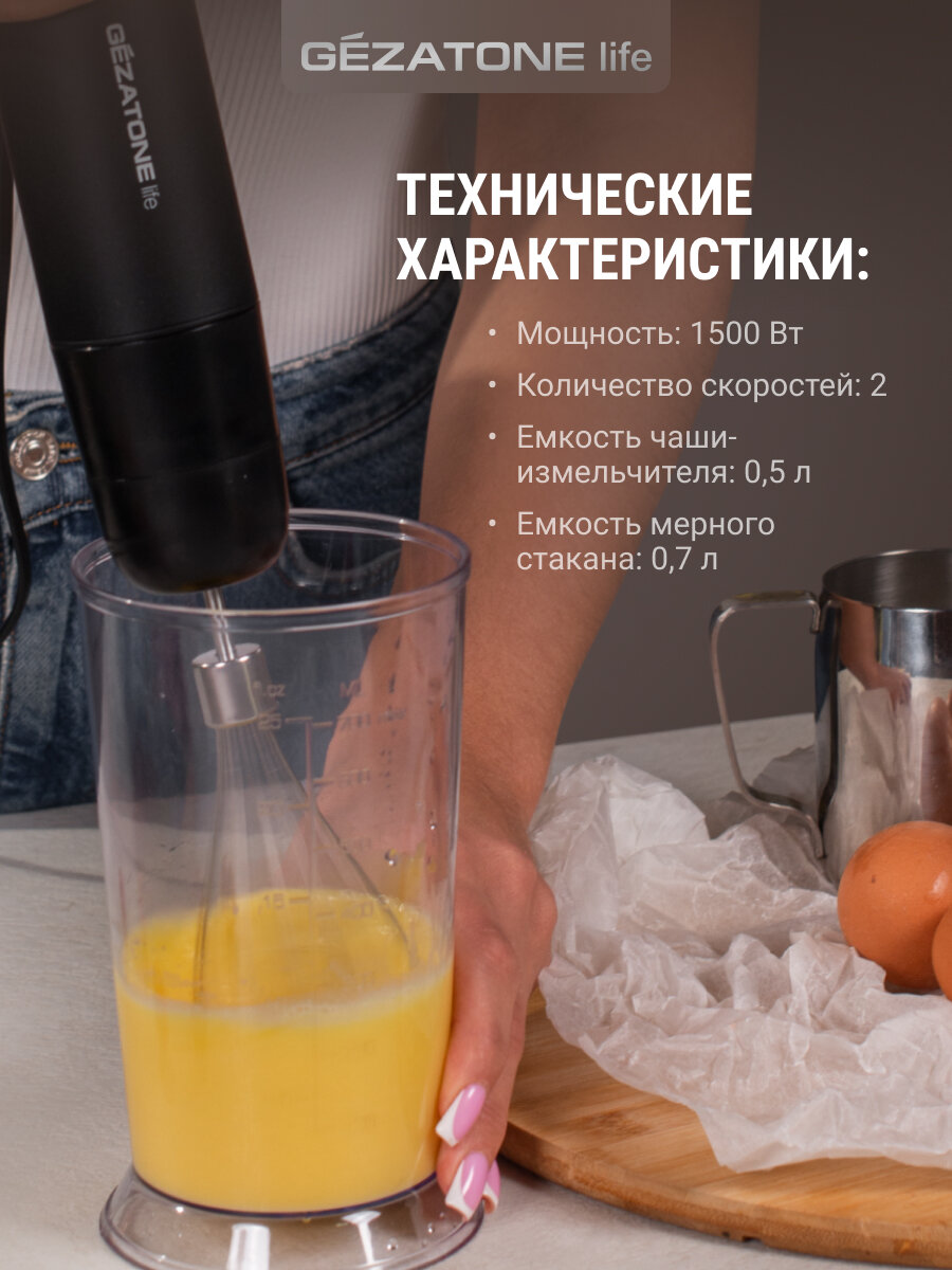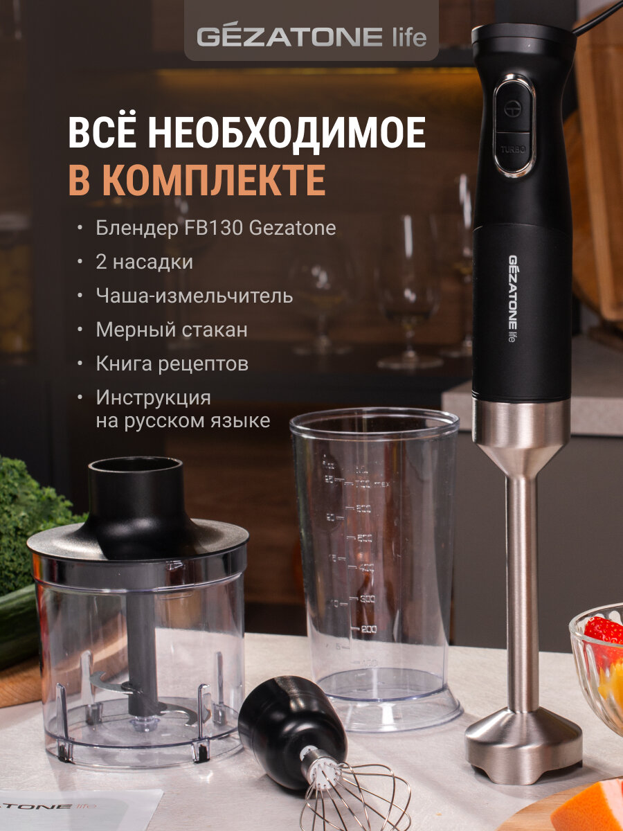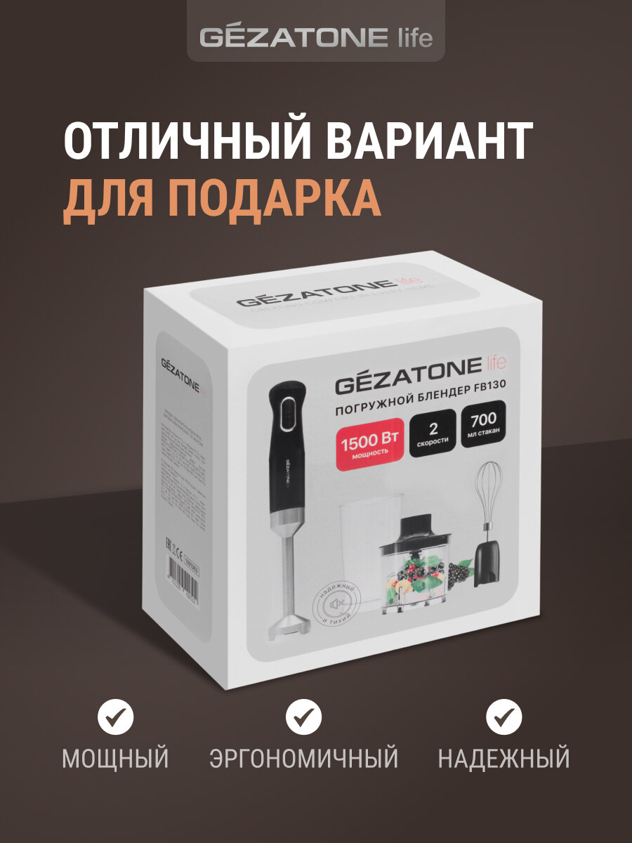 Погружной блендер GEZATONE FB130, мощность 1500 Вт, насадки для приготовления пюре и взбивания интересное: