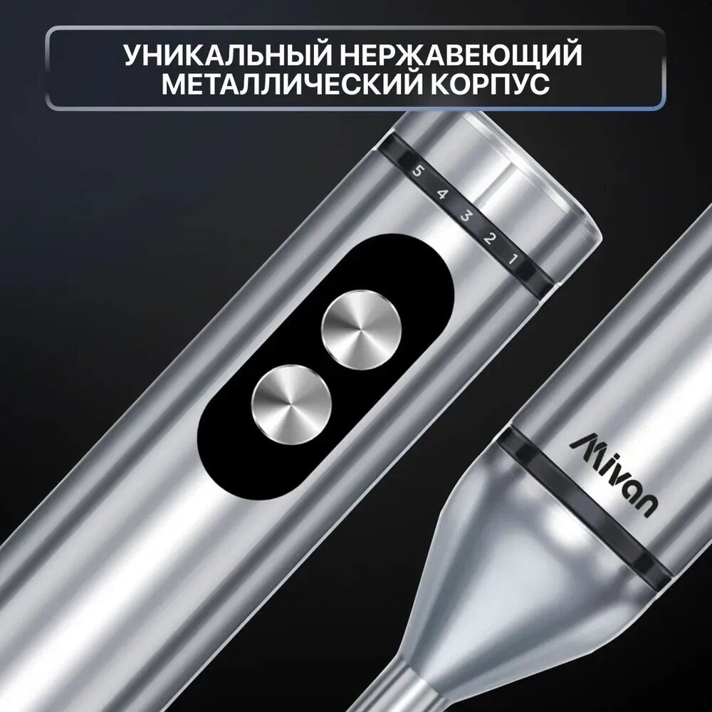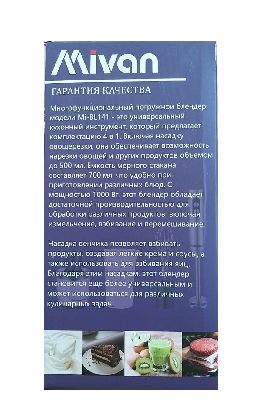 Блендер погружной 4в1 1000Вт Mi-BL141/Бесшумный мотор /Нерж. сталь /Турборежим /Емкость 500мл /Стакан 700мл /Венчик интересное: