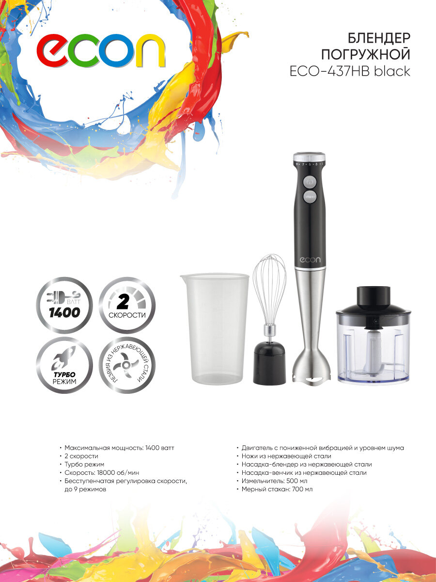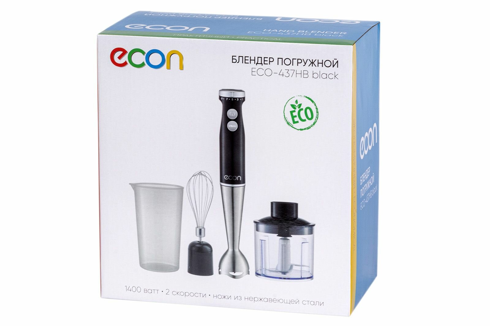 Купить Блендер погружной Econ ECO-437HB black, 2 скорости, насадка-блендер и венчик из нержавеющей стали,500 мл, 1400 Вт