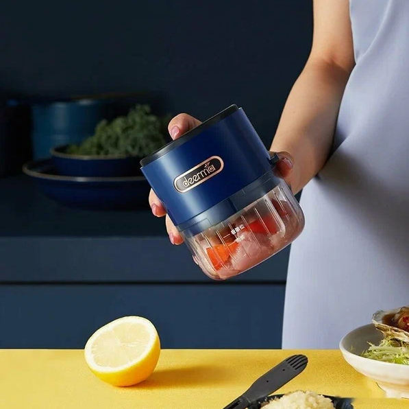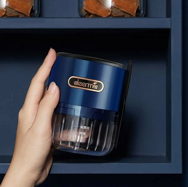 Портативный блендер Deerma DEM-JS100, 40W, синий, прозрачный кувшин 0.2л, USB зарядка интересное: