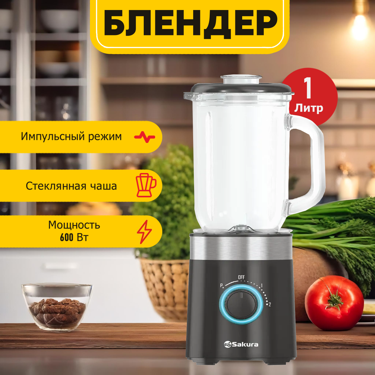 Купить Стационарный блендер SAKURA SA-6255BK с импульсным режимом, стеклянная чаша 1 л, 600 Вт