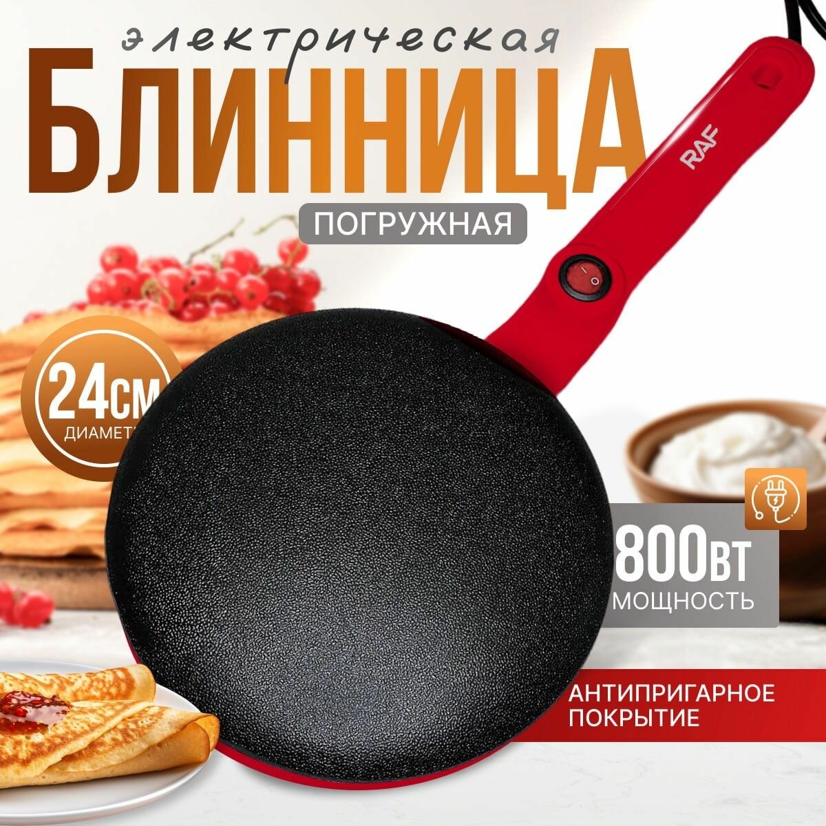 Блинница погружная электрическая с антипригарным покрытием, 20 см, красная