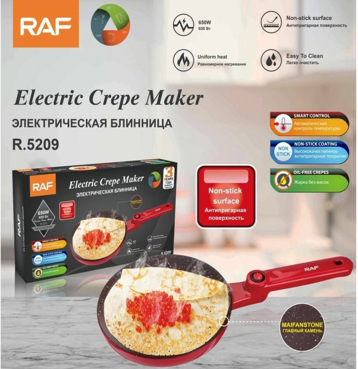 Блинница погружная электрическая с антипригарным покрытием, 20 см, красная интересное: