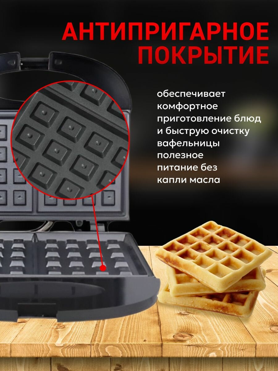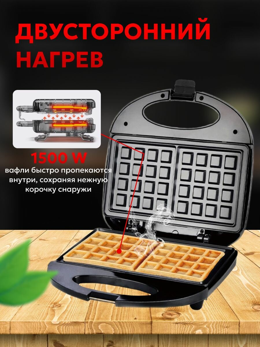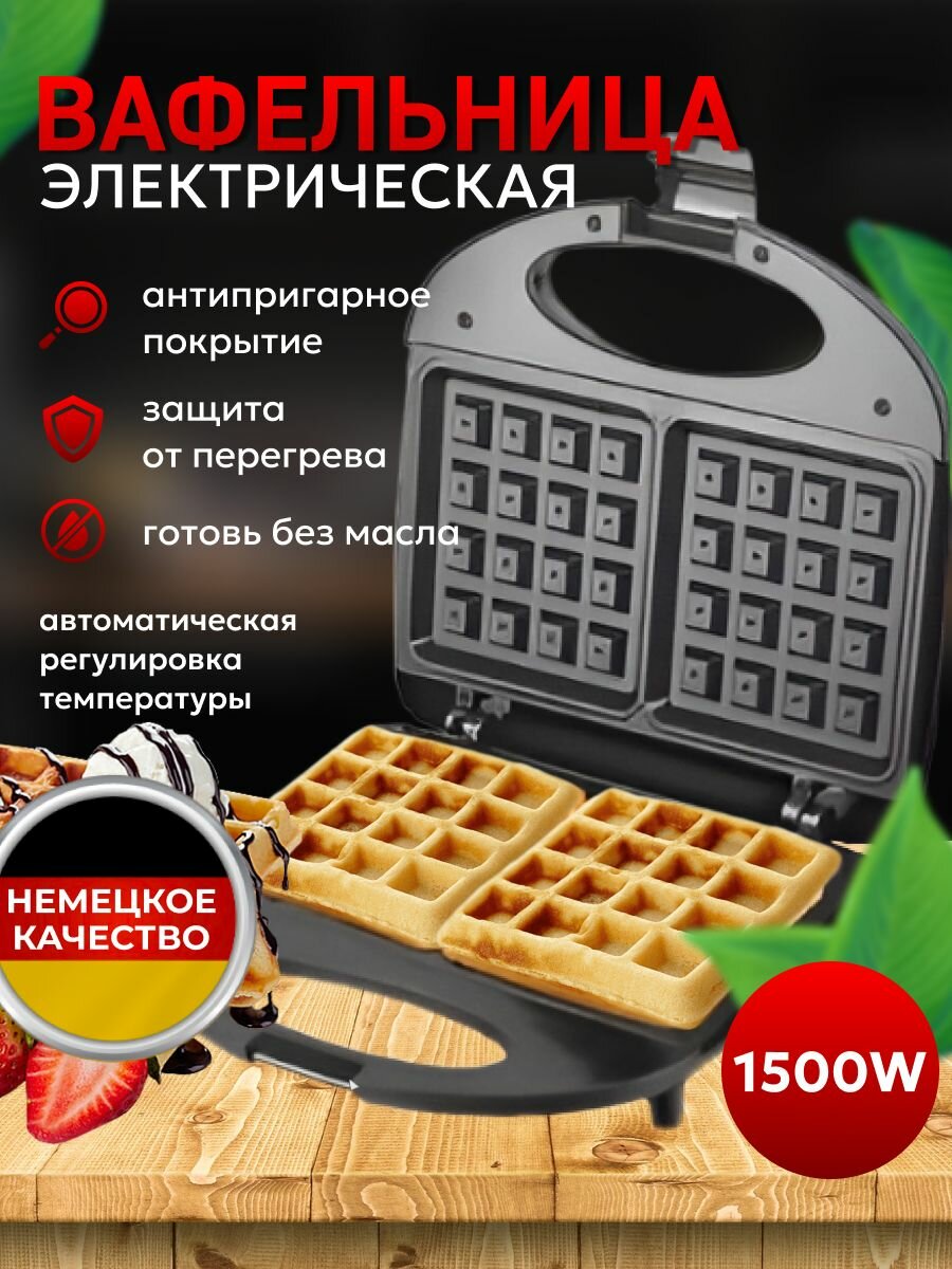 Vibrosa Вафельница Электрическая для венских вафель с антипригарной покритией 1500 Вт, черный матовый интересное: