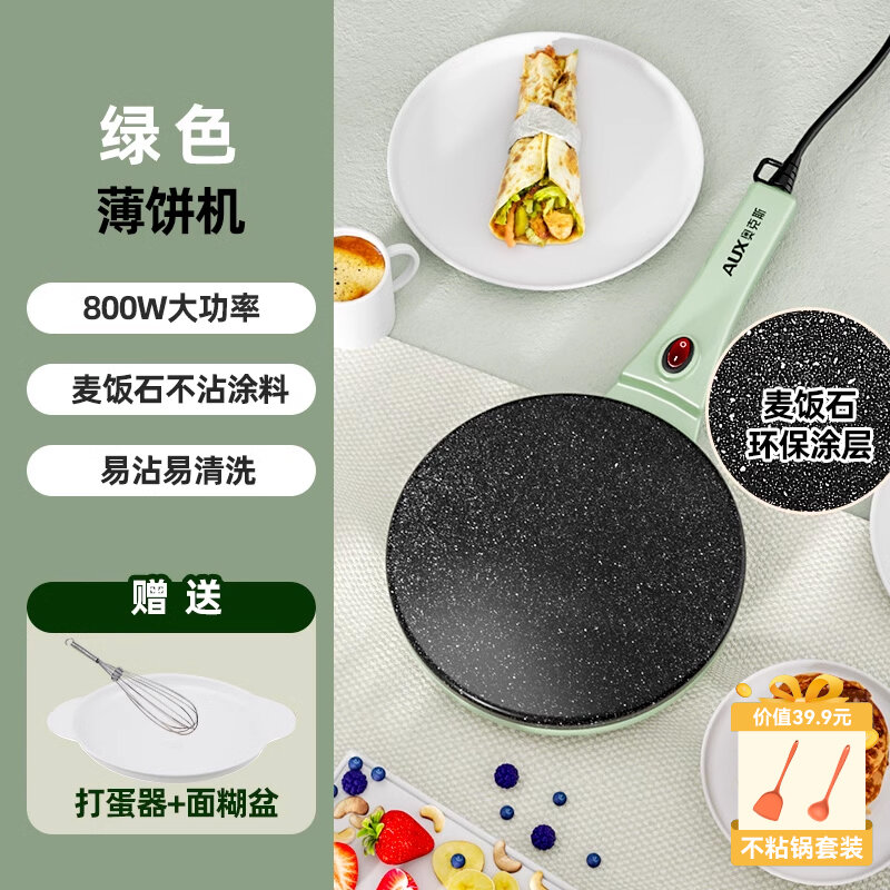 Электрическая блинница для панкейков - Свежая зеленая с лопаткой и ложкой интересное: