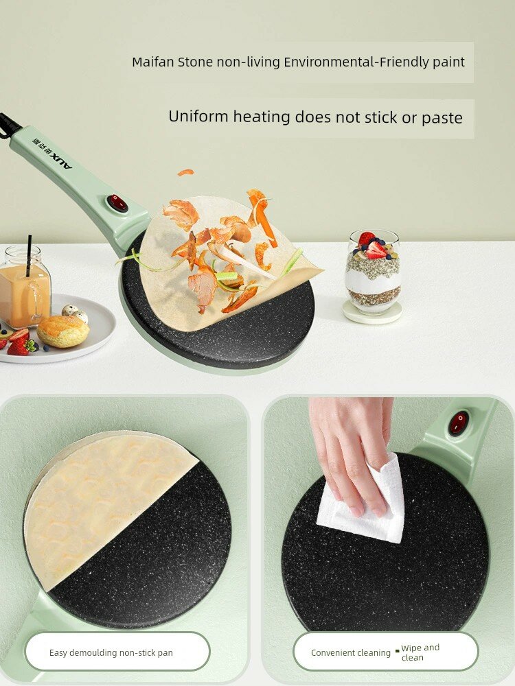 Электрическая блинница для панкейков - Свежая зеленая с лопаткой и ложкой