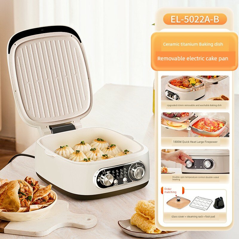 Купить Электрическая блинница с углубленной нижней панелью, керамическим титановым покрытием (белая)
