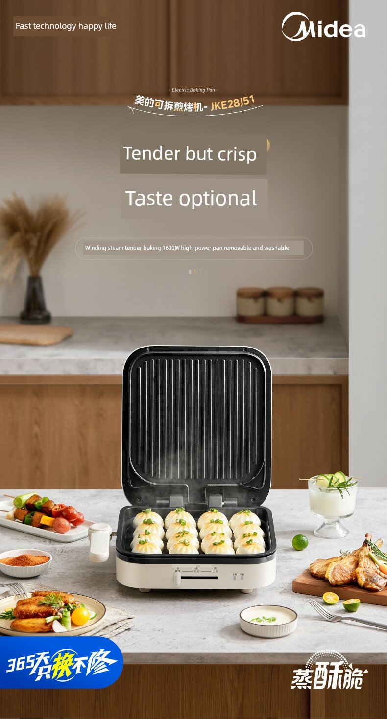 Купить Электрическая блинница Midea с двусторонним нагревом, съемной панелью и складной ручкой, кремовый