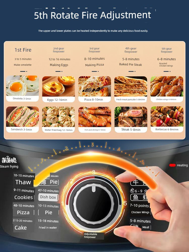 | Дополнительная информация | двусторонний нагрев, 5-ступенчатая регулировка мощности, передний переключатель, безопасные прихватки, алмазная форма для выпечки, подвесная форма для выпечки, многоугольное открытие и закрытие, конструкция маслоотвода, углубление на 25 мм, технология подвесной выпечки, регулируемая мощность, приготовление на пару, увеличение формы для выпечки на 30 см, независимый нагрев верхней и нижней дисков, форма для выпечки с антипригарным покрытием, большое открытие и закрытие на 180°, антипригарное покрытие |