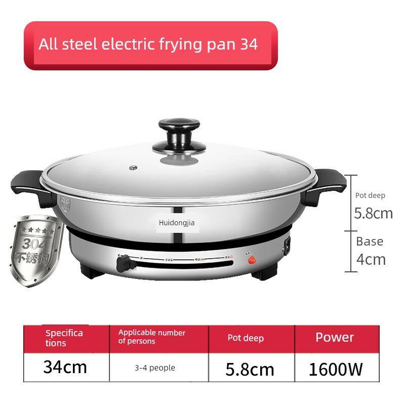 Купить Электрическая сковорода для блинов с переключателем и регулировкой температуры, нержавеющая сталь 304, 34 см