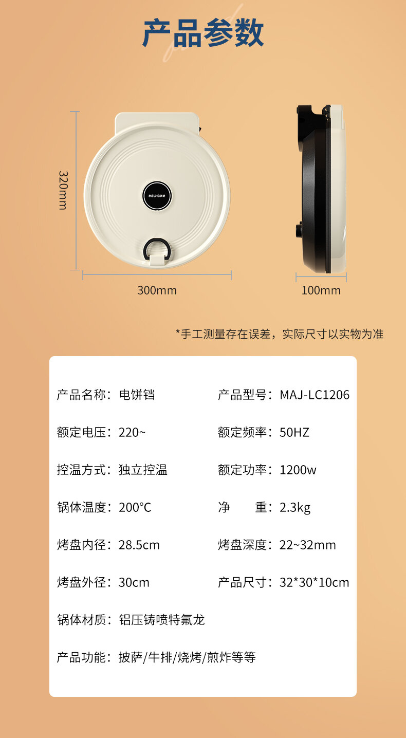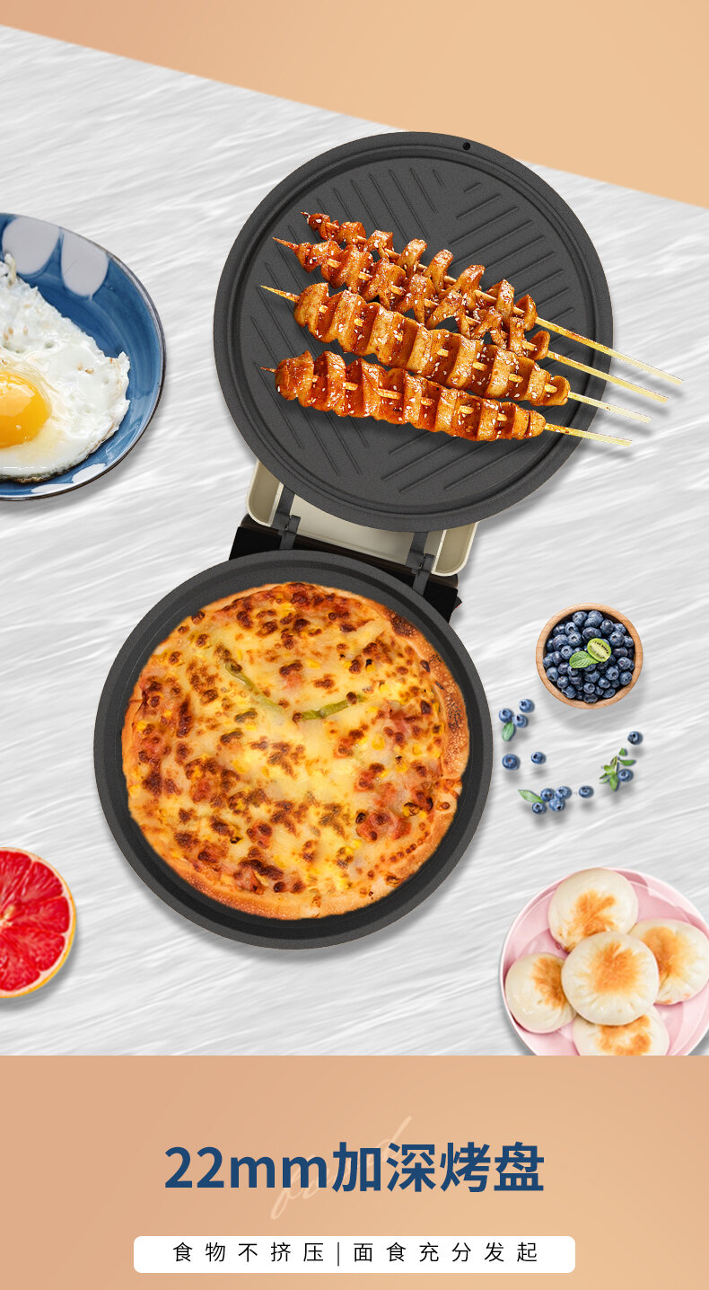| Дополнительная информация | литая форма, независимый контроль температуры, верхняя и нижняя пластины нагреваются отдельно, углубленная форма для выпечки 22 мм, свободное открытие и закрытие на 180°, антипригарная сковорода, пицца/стейк/барбекю/жарка |