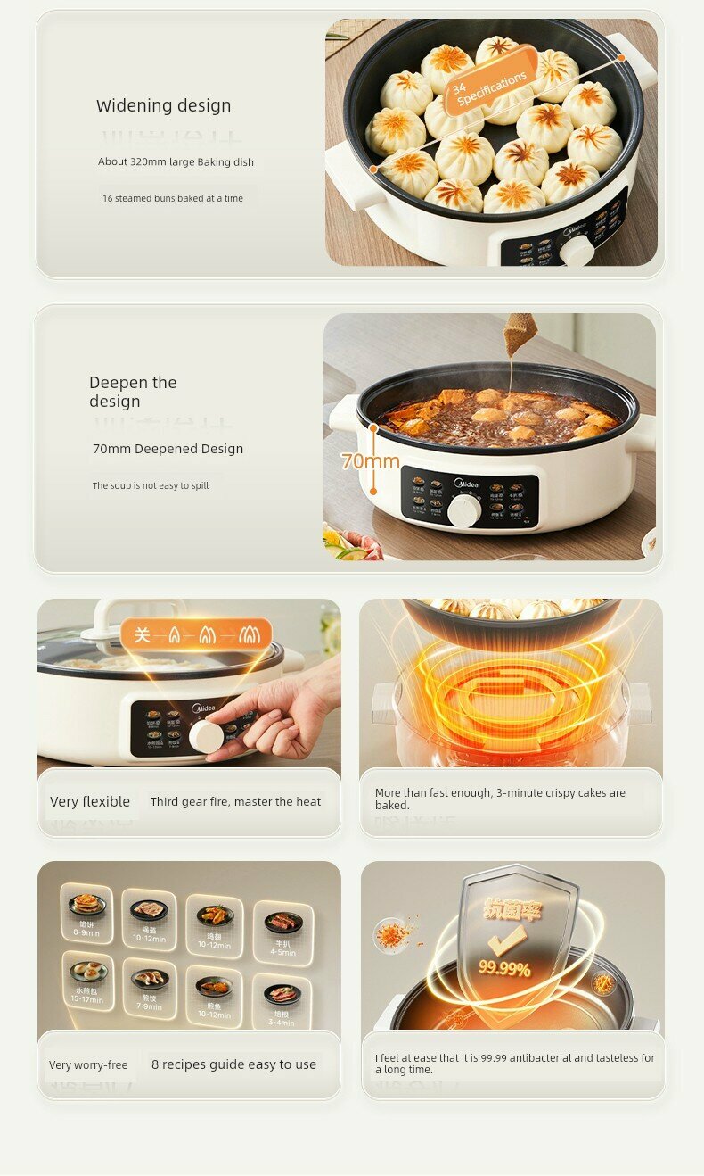 Электрическая блинница Midea JKC3463, большая, глубокая, для жарки, белая интересное: