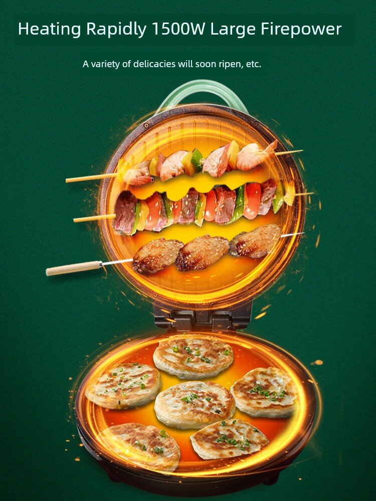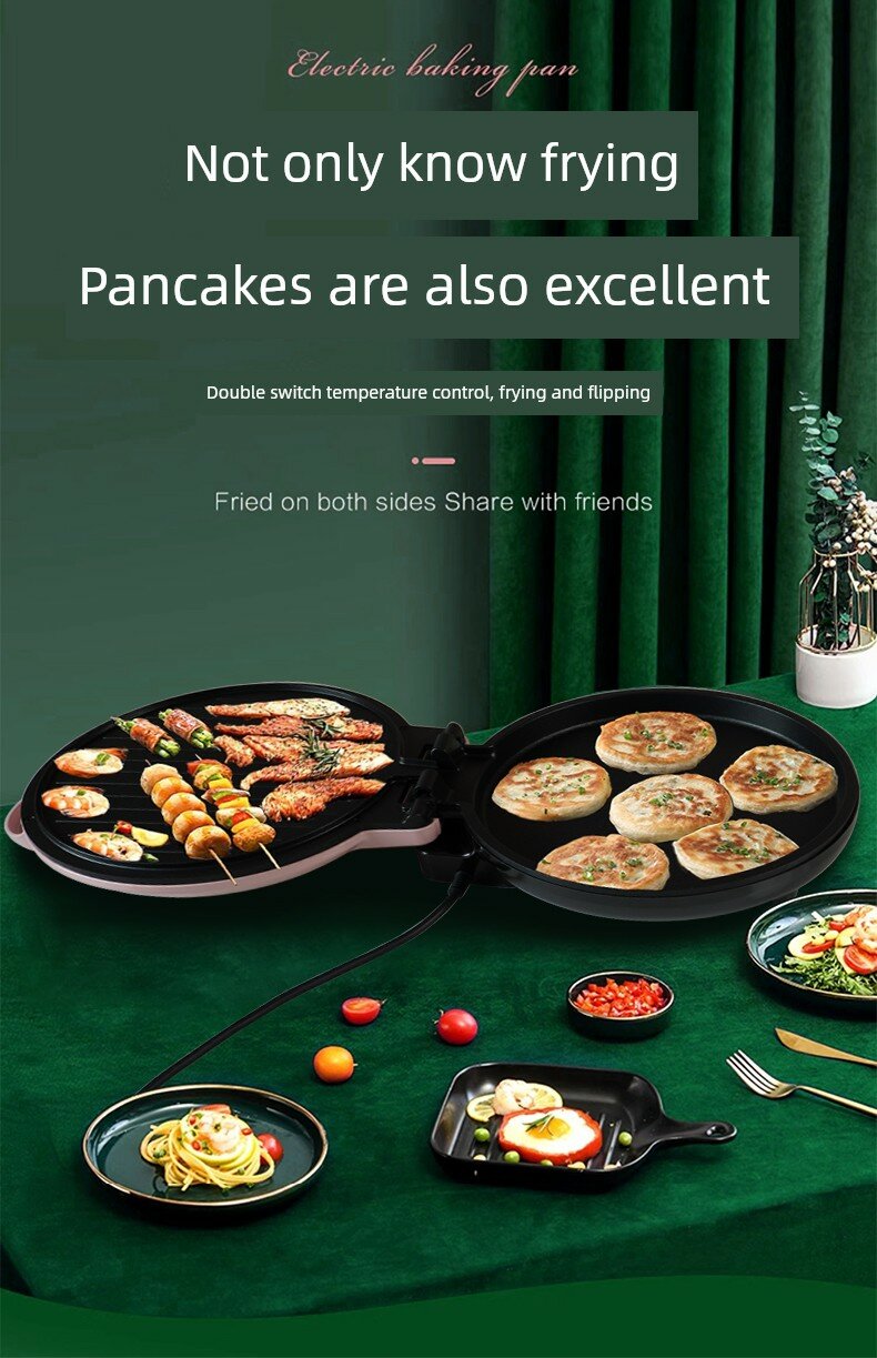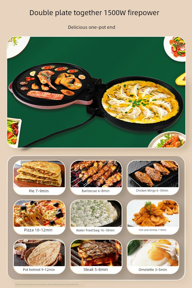 | Дополнительная информация | двусторонний нагрев, большая огневая мощь 1500 Вт, двойной переключатель контроля температуры, подвесная жарка, большой диаметр 29 см, несъемный плавитель, гарантия 1 год, брендирование, стейк на гриле, жареный, жареный, блины/блинчики, верхняя и нижняя форма для выпечки, материал нагревательной пластины с антипригарным покрытием для контакта с пищевыми продуктами |