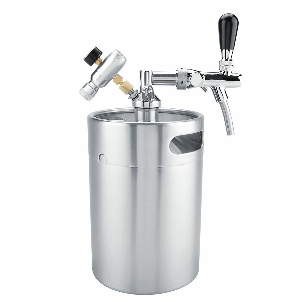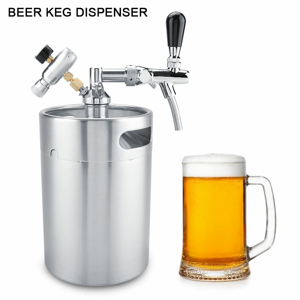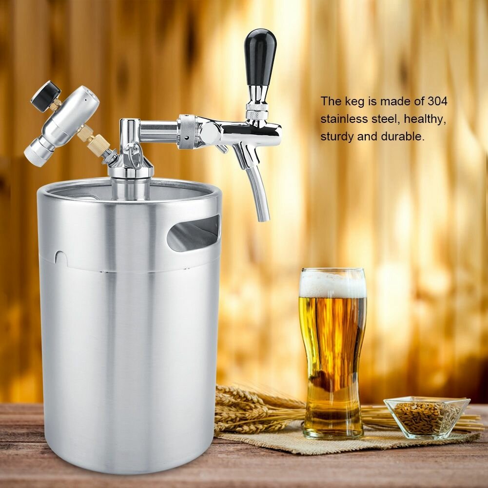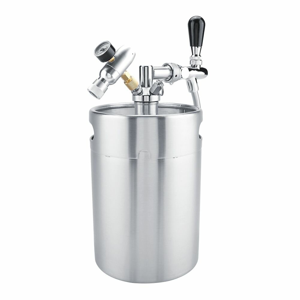 2-литровый мини-кег с краном для домашнего пива из нержавеющей стали с двумя манометрами класса