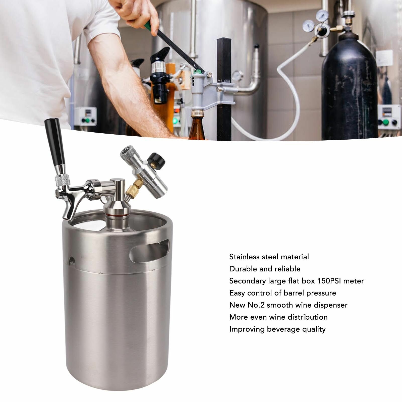 2-литровый мини-кег с краном для домашнего пива из нержавеющей стали с двумя манометрами класса