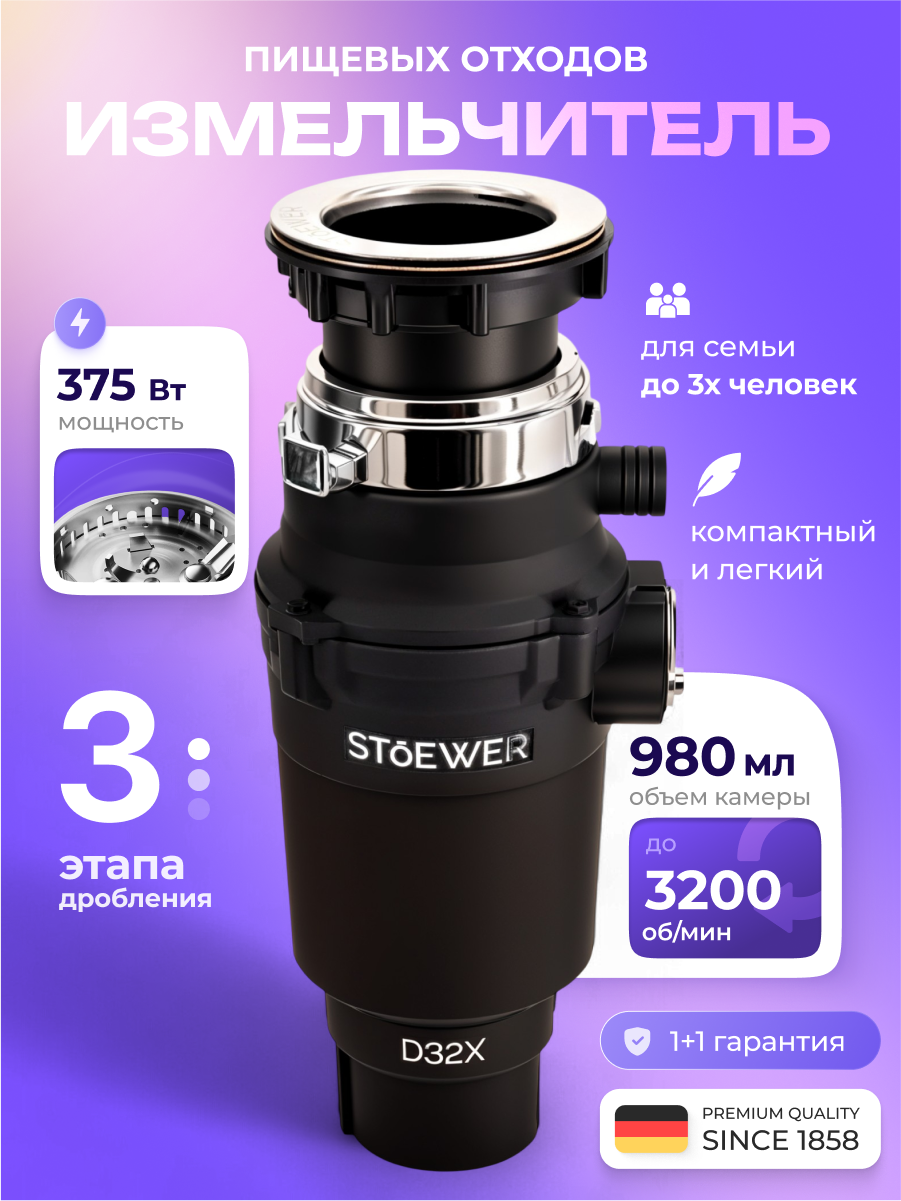 Измельчитель пищевых отходов STOEWER ШТОЕР D320 интересное: